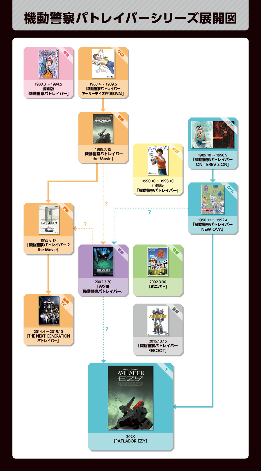 >>23713547So on the continuity thing, you just need to keep in mind that TV is largely an adaption of the manga and OVA2 is the direct continuation. Production order is fine, and the movies are more based on the general idea of Patlabor than trying to specifically reference one or the other.People point this out because there used to be people confused by OVA1 and TV covering the same ground in different ways, or that TV and movie 1 feature alternative versions of some of the same tech and events. Or even worse you used to get some people who'd watch OVA2 straight after OVA1, because it's called OVA2 and they just finished OVA1, and be totally confused.I suppose it's less that there's a 'movie and TV timeline' and more that TV wasn't part of the original plan for the franchise, it got commissioned based on the manga because it was such a hit. So it ends up being kind of its own little thing.