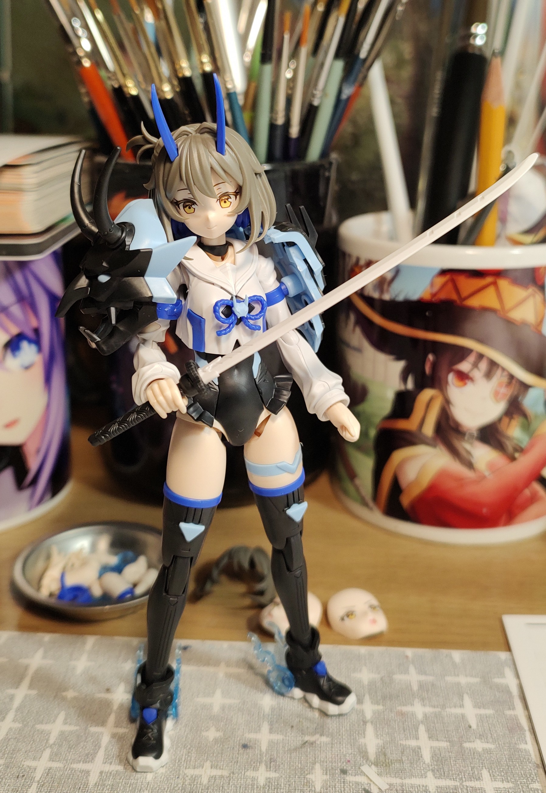 She's completed. I already adore her.Any thoughts on the colors? I tried to hide as many gundam colors as possible on her. The hair is just zeta blue.