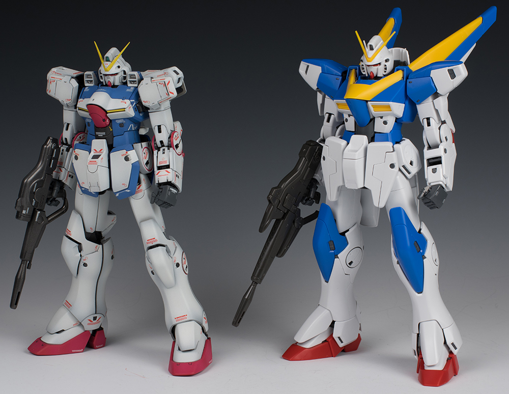 >>23688455>>23688458Those are the MGs I'm pretty sure. I cope by just having the V2 flying over the V in my display so you can't notice as easily. Also the extra half inch does make the V2 more solid and slightly more posable.After building the HG V2AB I now want a non transforming MG version of each though.