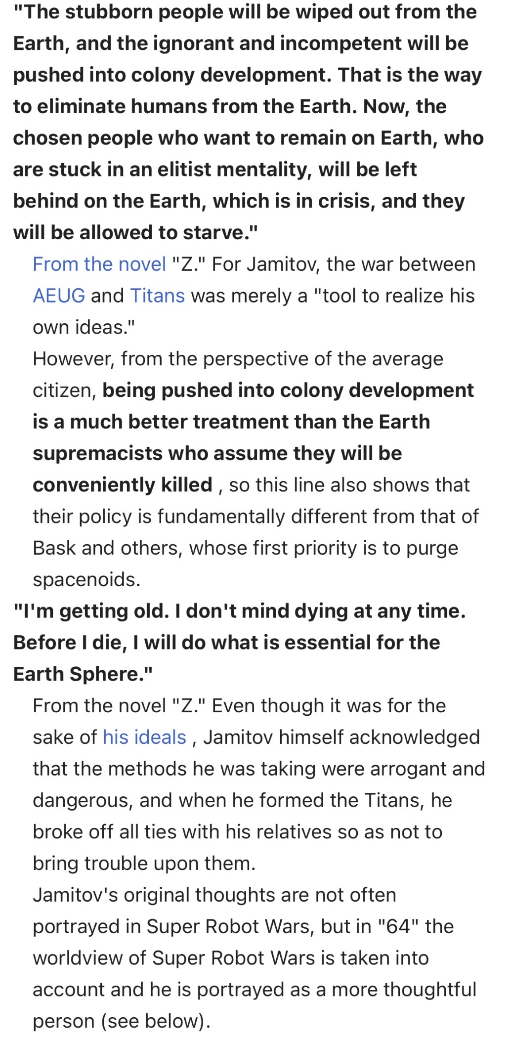 >>23688354it's both, just the novel remembered Jamitov could get screentime instead of the viewer just being told what he wants in a random conversation.Games like Gihren Greed and SRW 64 does too funny enough