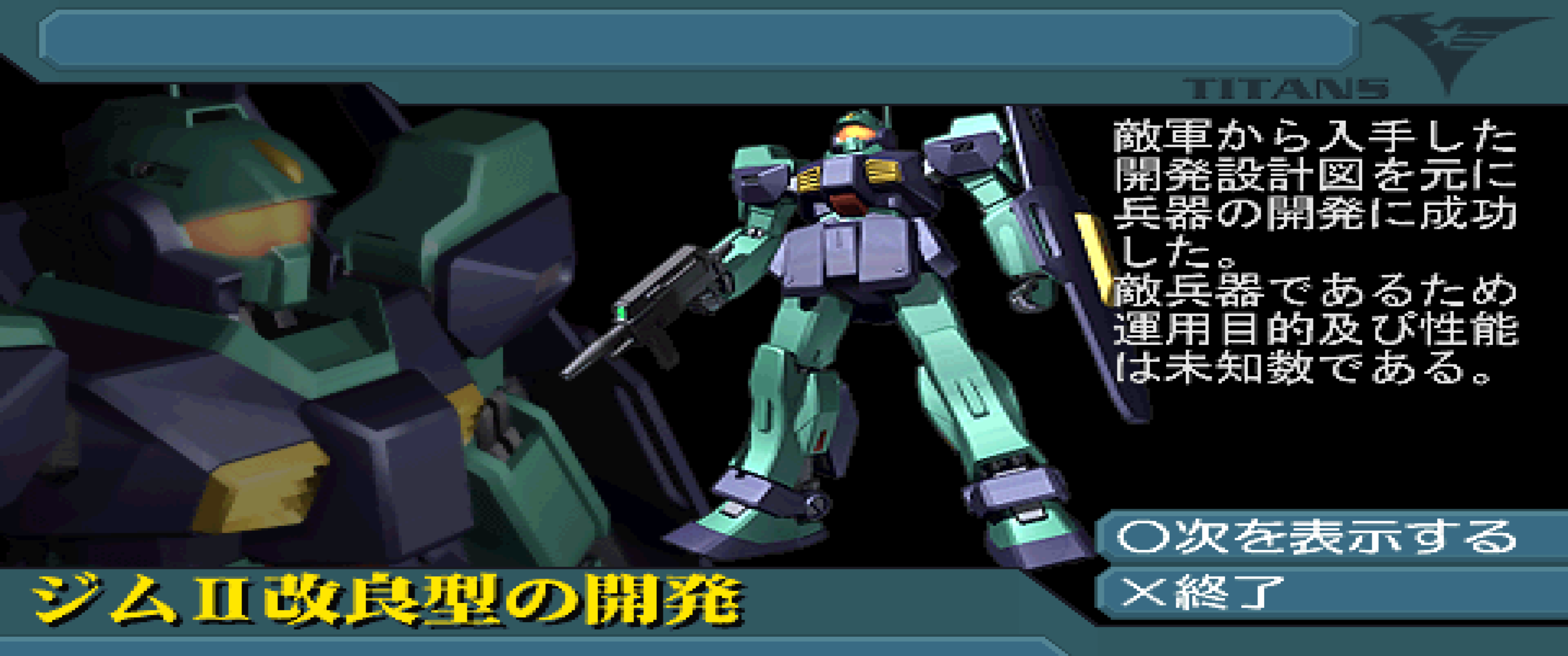 Coming into the tail-end of my own Titan game again and I think one of the funnest things I've done this time round is not over-preparing for Axis. Having to make-do with a handful of Xeku, Marasai and Hizack Customs on Earth while what's left of the Granada Invasion fleet and buffer garrisons (mostly Barzams, Hizack Customs and a lot of starter units left over) in space has made this particular run quite exciting.It's even mirrored Titans Kamille somewhat as I managed to land the Hyaku Shiki (Kai), Methuss, Nemo and Radish through espionage. Super Gundam is super good too though it took me super long to get it.