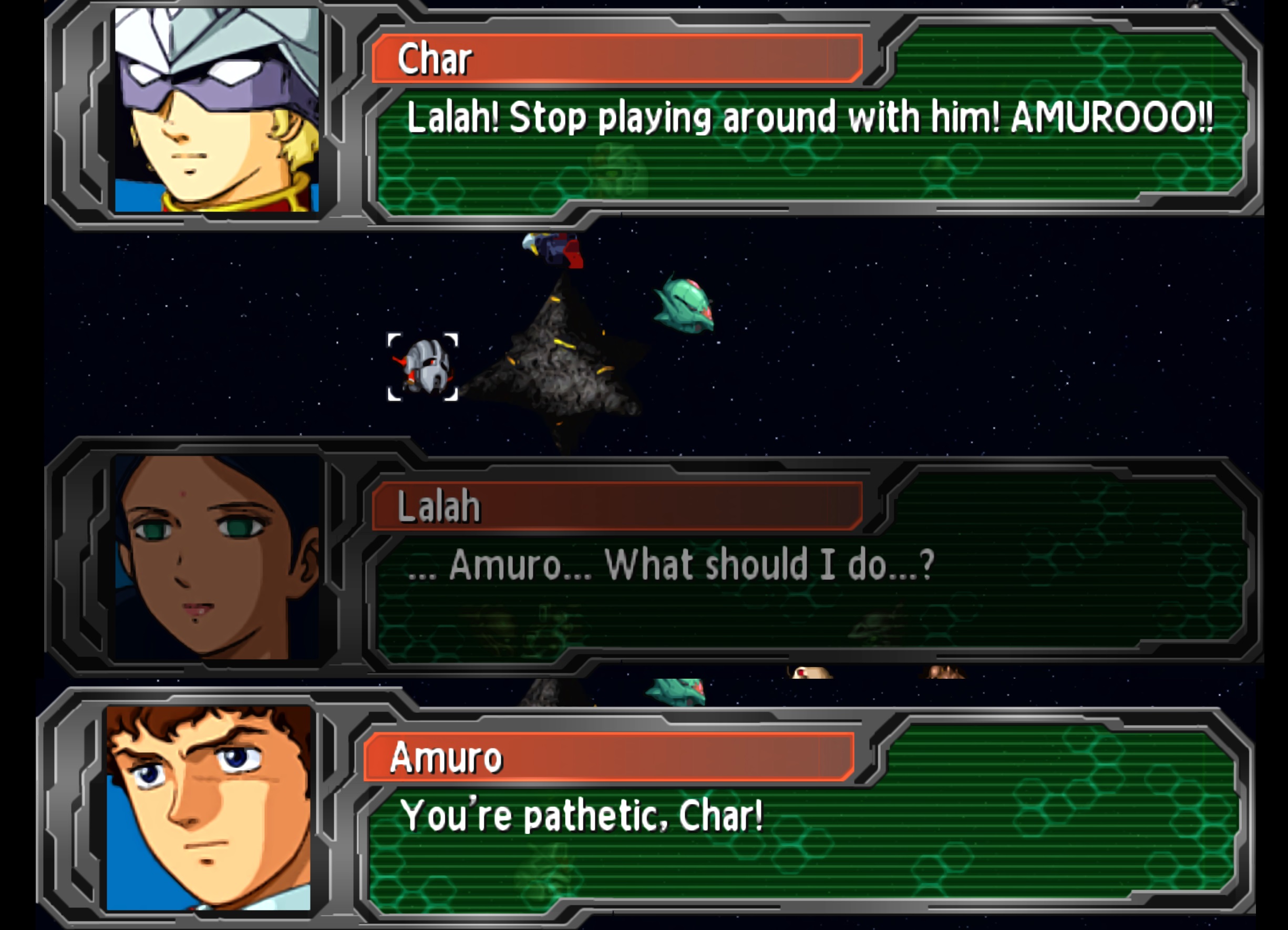 >>23688611Despite the lingering, complicated emotions between Kamille and Jerid, Gady arranges for a meeting aboard Kamille's Alexandria to organize the assault on the AEUG's fleets stationed at Side 2. >Gady: [Reconnaissance has determined their numbers to be nearly sixty Mobile Suits strong, possibly more. Originally I planned for the Lieutenant and the other pilots to launch multiple separate hit-and-run attacks to draw their forces away from their main fleet, but with a second vessel, we could split them more effectively.]>Jerid: Did I not make it clear enough that we don't need to resort to that? Our force alone is more than strong enough to push straight through whatever the AEUG has stationed. The AEUG could run if we don't crush them all at once.>Gady:[I have no intentions of allowing any of them to leave Side 2 alive, Lieutenant. Commander Bidan, I request that your forces flank the AEUG's forces, cutting them off from escaping.]>Kamille: If we do that, your ship would be left completely open if something went wrong. Even if the AEUG were to run, taking these Colonies would be more than enough to weaken their->Jerid: So, did Scirocco give you those women as well? Haha...what is this? Some kind of competition to him? What did you mean "if something went wrong", huh?! >Leila: You are seriously annoying, you know that? Obviously Kamille is aware that you people just can't compare to Kamille. Even I could easily overpower someone like you->Jerid: Unless you want me to shut your wind-up cheerleader up, do it yourself, Kamille. >Leila: Face it, loser. The only reason Kamille hasn't taken control of your little operation is because he pity's you->Kamille: Go out in the hallway.>Leila: Kamille->Kamille: Get out there! Now, Leila! Leila releases an annoyed huff as she floats towards the doorway to leave, cocking her head back to mockingly stick her tongue out at Jerid.>Jerid:...Leila, huh? Is that her name?>Kamille: Yeah, it...wait, Jerid-