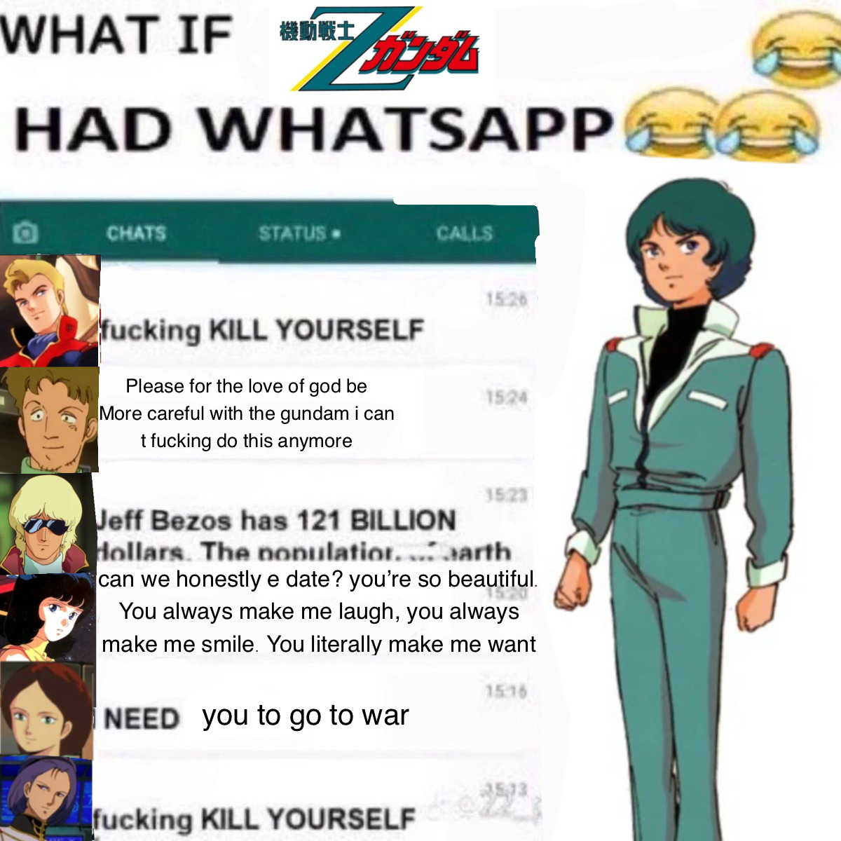 >>23695836Hopefully we can manage our investment on Jerid and at least manage to have Kamille and him on good terms. If the two can actually work together and plan together they'd be unstoppable. Especially if Kamille gets Zeta Gundam, him and Jerid in the Hyaki Shiki would annihilate entire armies together.