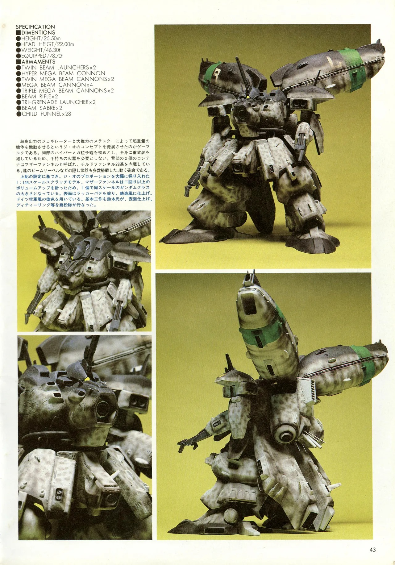 >>23702300>By that time, I was already sketching out the G-Fortress enhancement plan in the 1/100 ZZ instructions, and the Hi-Megacannon was something I drew back then; when a feature was put together in Newtype magazine leading up to the ZZ finale, I tacked it onto the cels I drew for that. Not long after, Mr. Ushikubo scratch-built it in Model Graphix, which led to the Sentinel's FAZZ, right?Ohnononononono, retardkun???