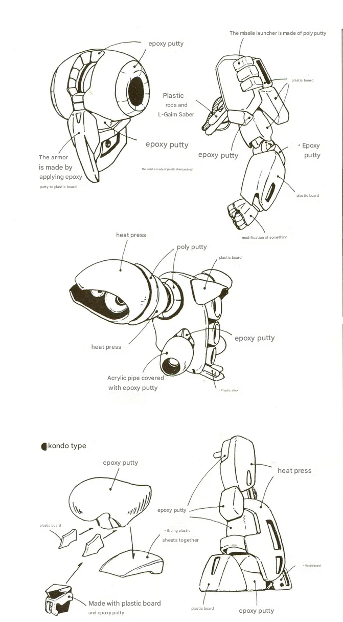 >>23700112For this one the head was scratchbuilt. He goes over the parts used in the accompanying text. Various parts were taken for other elements but a lot of it was fully scratchbuilt. Some Zeta and Mark II parts are called out for the feet and legs respectively in other text.