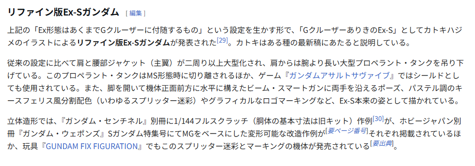 >>23700523>One of these things that has been common more modern depictions despite not appearing in the original workThe shoulder slide thingy is actually from the build MGraphix made for their Sentinel series. Katoki didn't design Ex S with this gimmick but he approved it so it is not an issue.