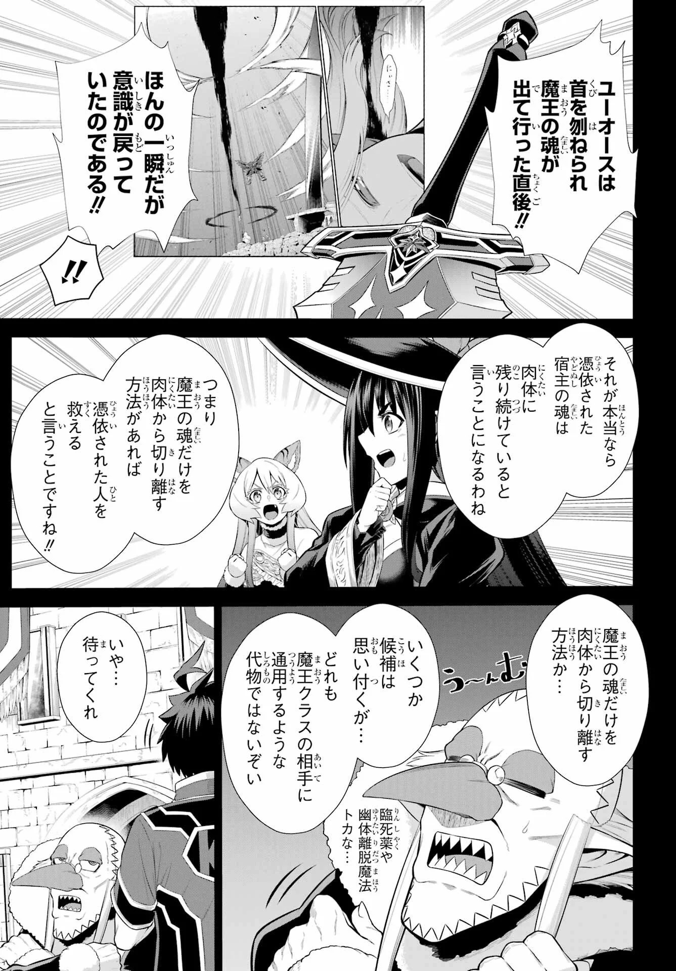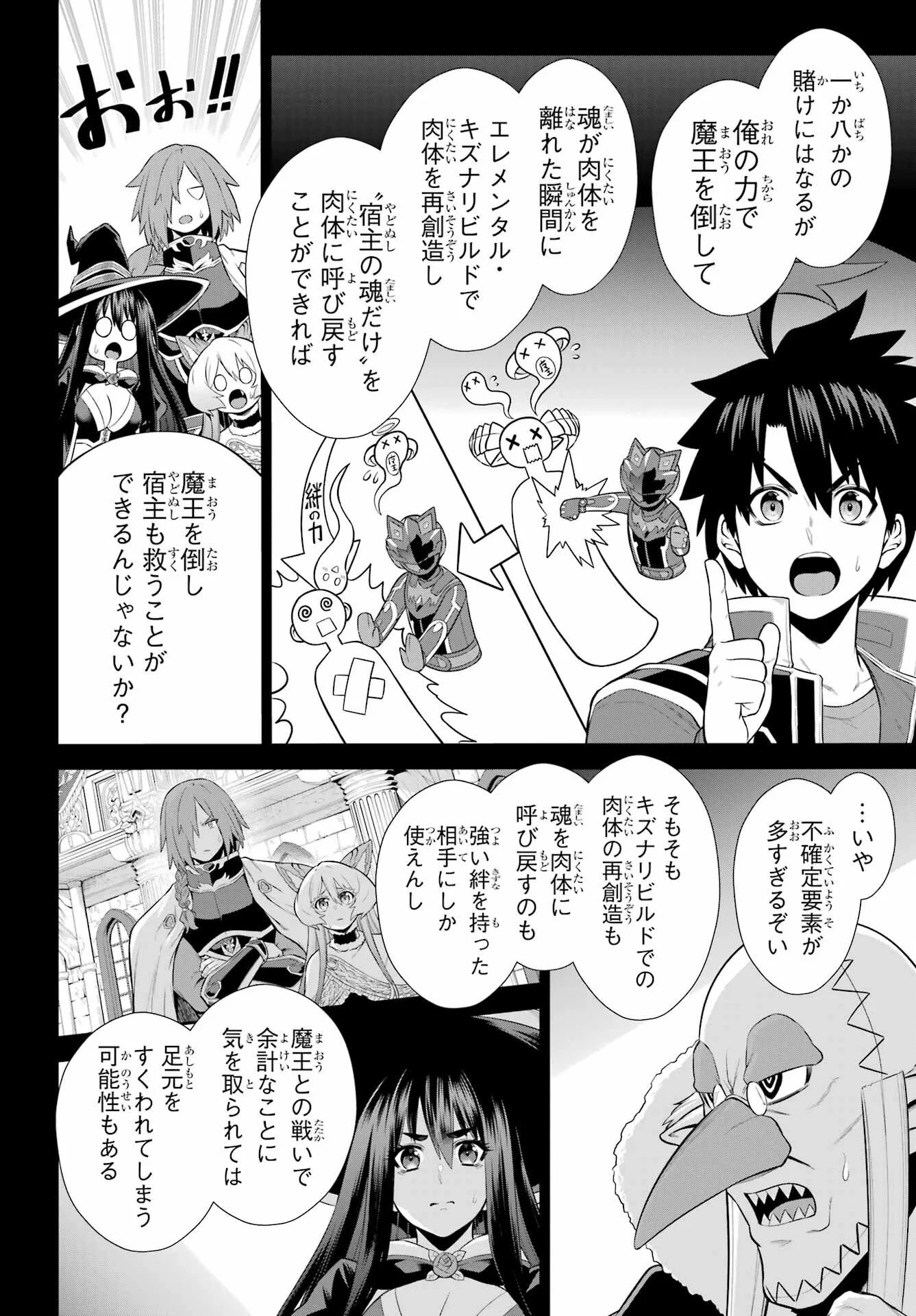 >>23772509On page 16 we have Tougo acknowledging that fact, but he doesn't want to give up on saving the person and the bonds they've formed just because it's more difficult. Lowji adds in that since there is concern that Teltina could get possessed should the Demon Queen be killed in her current body, he'd also like to discuss potential countermeasures. Patchwork starts pointing out that there may be no possibility in the first place if the Demon Queen's possession removes the original body's soul, but Lanars interrupts and says that there's an important bit of info in regards to that.
