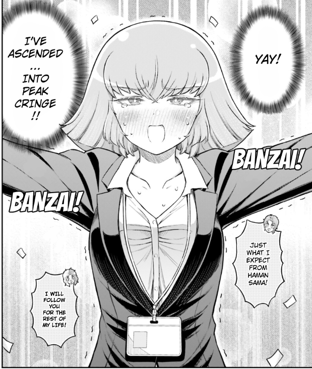 My ideal OL Haman chapter would be where Mineva and Banagher go out on a date with Char and Haman chaperoning.