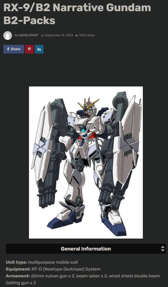 >RX-9/B2 Narrative Gundam B2 Packs