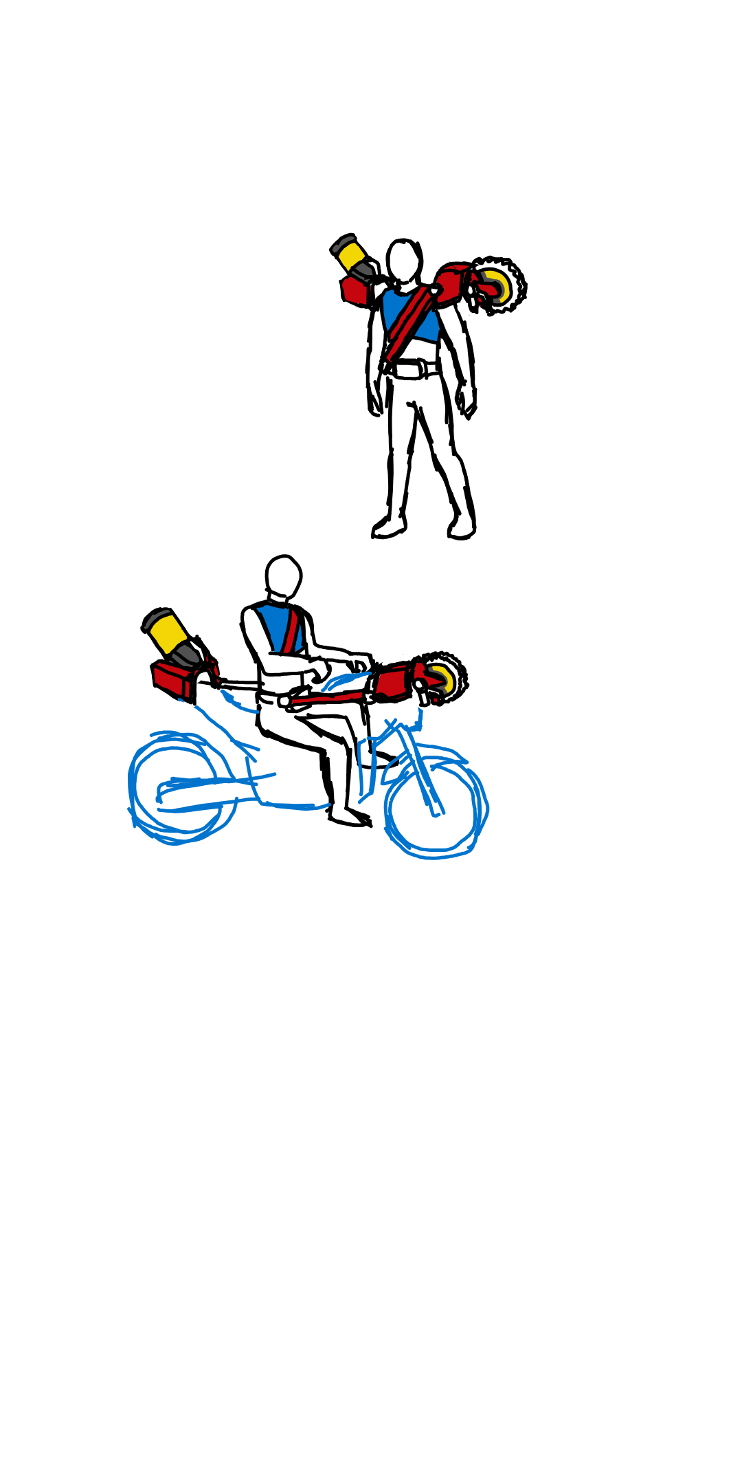 I like that the swap is just a button press, more manageable in fights than twisting the belt like with the Gochipod.