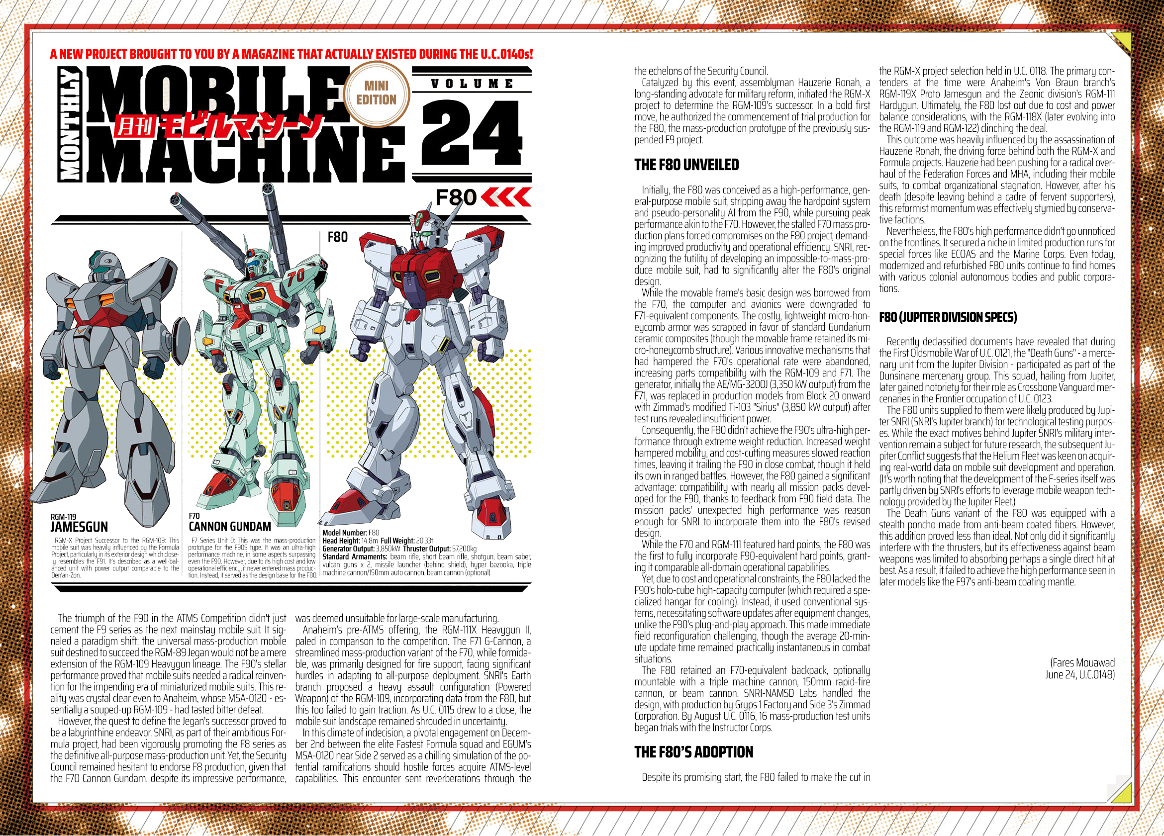 The Monthly Mobile Machine compilation vol 1 is (finally) coming out at the end of the month. It's said to include new illustrations, probably like the cover art, colored versions of previously monochrome entries and some revisions. I assume that's fixing up minor mistakes and typos that popped up every once in a while.Extremely unlikely to be anything groundbreaking or really new, but still good to have these in one place instead of just in Gundam Ace entries.