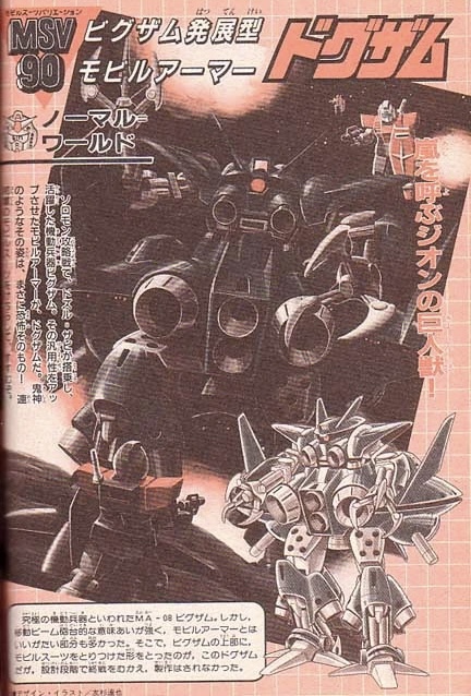Knowing that Jupiter phantom/Oldsmobile managed to fulfill various unused/Unmade principality designs like the atmospheric entry zaku, I wouldn’t be surprised that they had a RF Dogzam on board waiting to unleash fury. Note: it’s a smaller unmade 30/40 meter machine part of the Big Zam family. This is also from MSV90