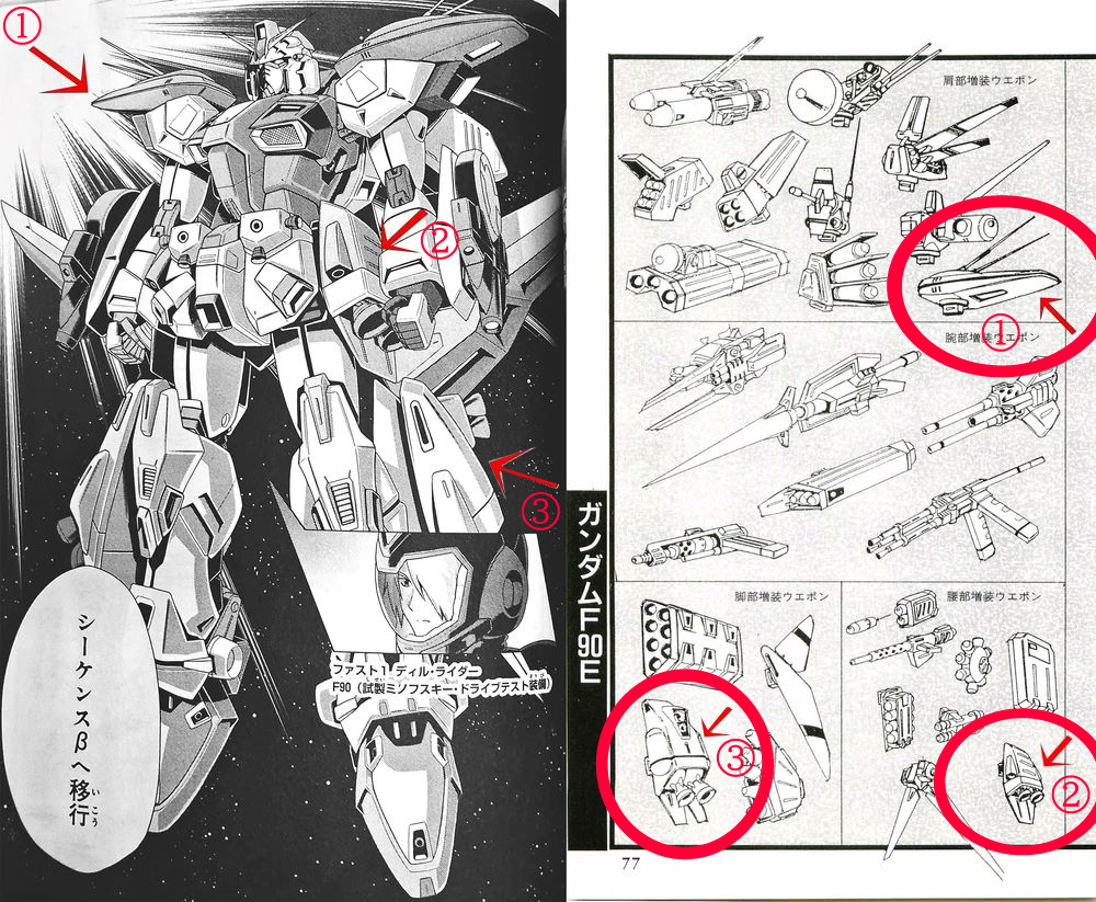 Alright, I take it all back.Turns out bare F90 MG kit is not compatible with X-Type besides the arms and sorta the legs. Can't mount the main part on the backpack, that's only compatible with Cluster's Core Fighter. You can more or less do the F90 Half-X but you can't use the OMRS-90 to do the Mars Gundam half.Pity, and kind of a dick move from Bandai. Modifying it probably isn't too difficult but it would it have killed them to let the kit do what we see X-Type used for in the manga?Still, the arm guns are very cool and it'd be neat to see just those combined with other Mission Packs.