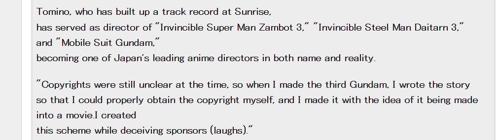 With Macross it wasn't about money but more Frank Agrama being old as fuck and realizing Harmony Gold lost far too many legal battles to let them lie their way into total ownership of Macross.