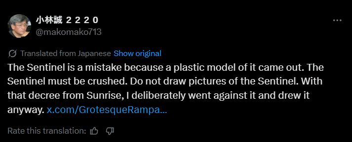 Although, yeah. They also seem to have an odd respect for the author, otherwise they could already have done an alternate "canon" version of Sentinel with a completely different story but same designs, they'd actually own.
