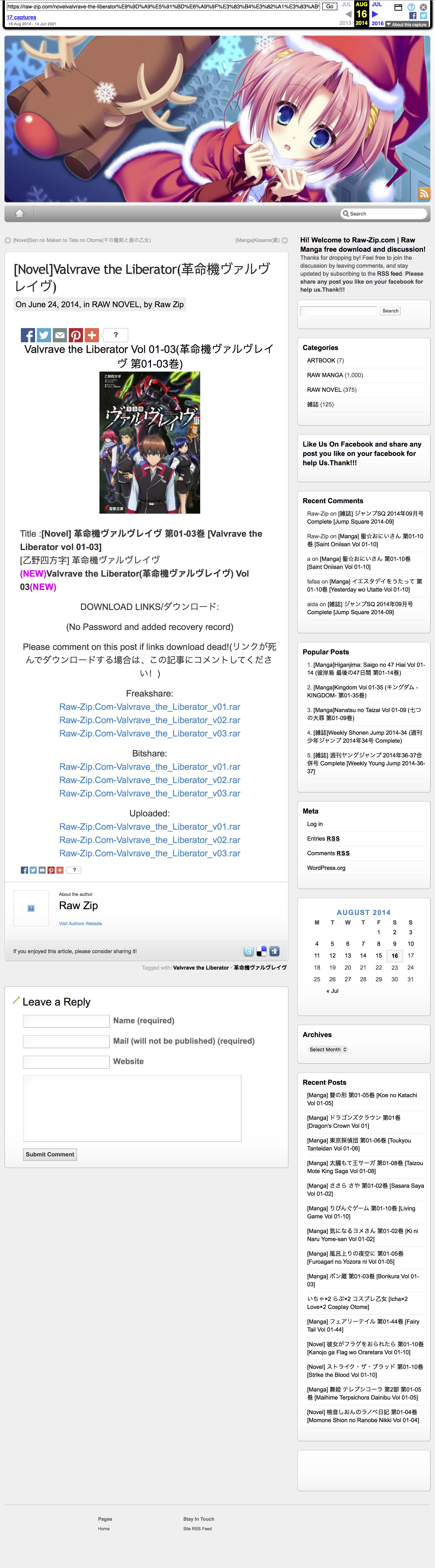 Out of curiosity, did anyone ever download the light novel from this site?https://web.archive.org/web/20140816105942/https://raw-zip.com/novelvalvrave-the-liberator%E9%9D%A9%E5%91%BD%E6%A9%9F%E3%83%B4%E3%82%A1%E3%83%AB%E3%83%B4%E3%83%AC%E3%82%A4%E3%83%B4/