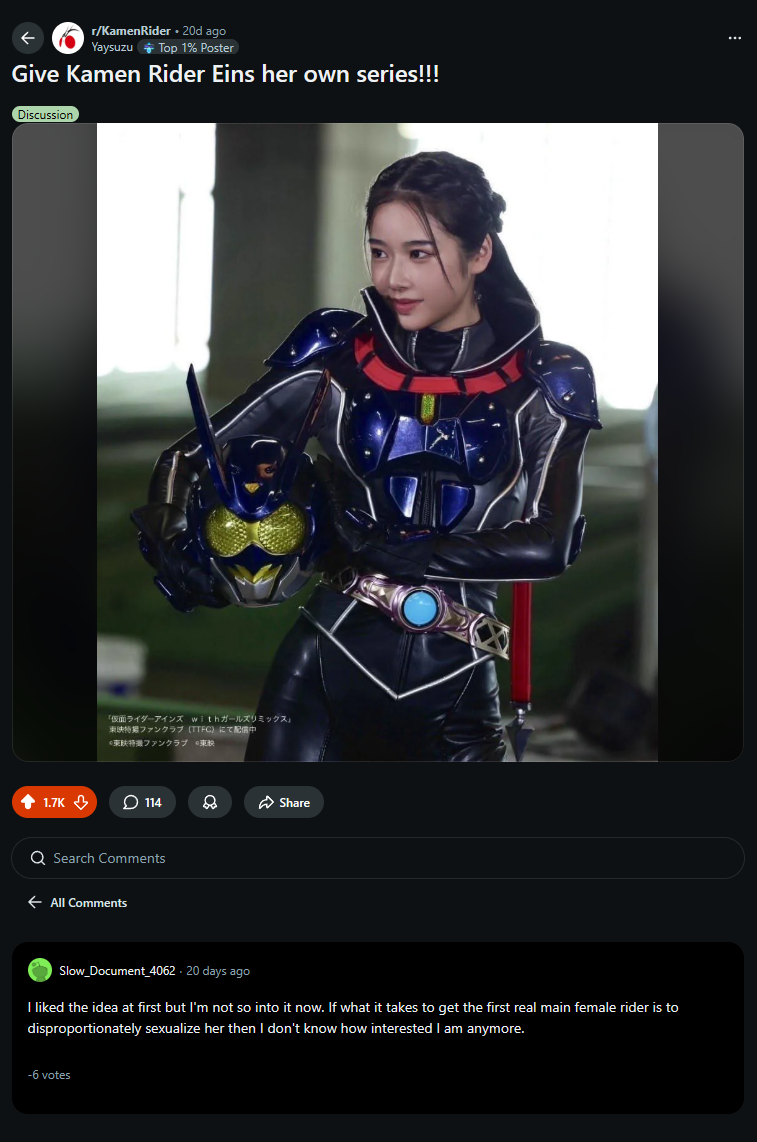 >>23753352Why don't you stay on reddit?So far unlikely to happen in the show itself given the toy listings and hack sounds in the belts but I guess there's a very slight chance for it to happen in the last 12 episodes