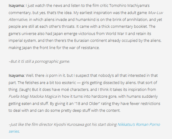 >>23792247>The game's universe also had Japan emerge victorious from World War IILOL WUT>I think it takes its inspiration from Puella Magi Madoka MagicaWTF am I reading?