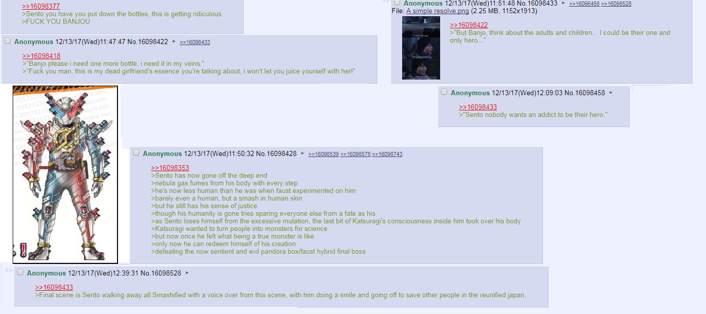Man I'm watching an older Kamen Rider and it's so fucking good and I WISH I was around while it was airing to discuss it with people