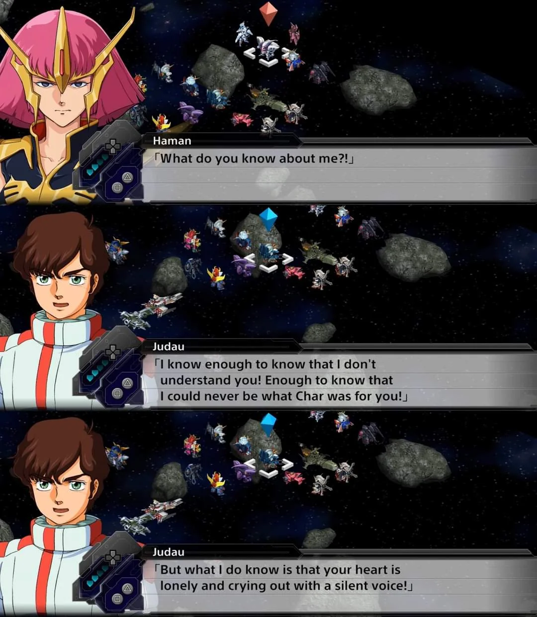 >>23773271Why are you defending this?There is a lot of things to like about ZZ, but they completely messed up the recurring cast. Haman shutting down a Newtype connection with Kamille and then running away crying from Judau was also out of character.Judau might be my least favorite of the protagonists. There is so little going on there compared to Kamille and Amuro. Character writing was not ZZ's strong suit.