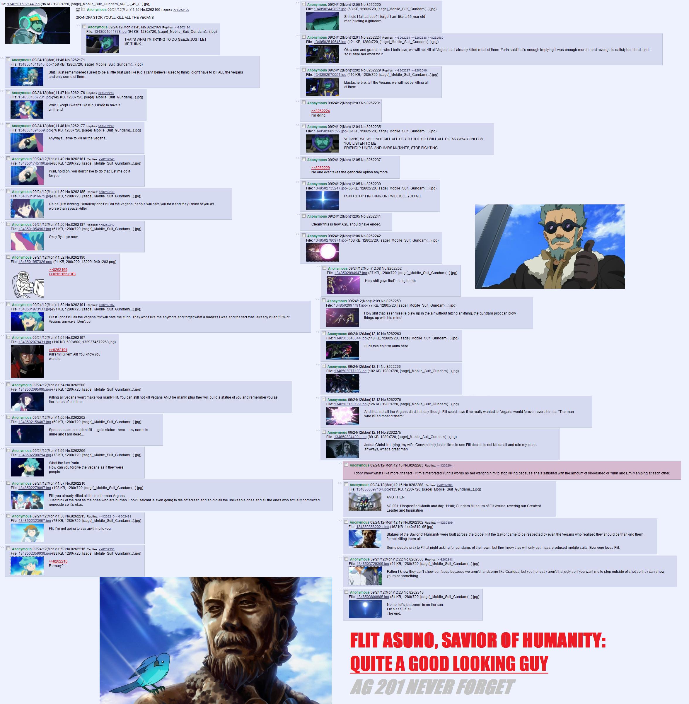 >then they do the AGE-3 Orbital dirty, plus the whole Second Moon arc and turning Kio into a pants-on-head dumbass whose morality-shaping event is watching a Vagan girl die of cancer