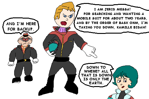 >>23781246>>23781809Yeah, Jerid is an enormous ass when he gives his fake apology, but Kamille retorts with a snide "it's okay, I know you were just a basic bitch nobody who couldn't help but follow orders" that hurts Jerid's pride.