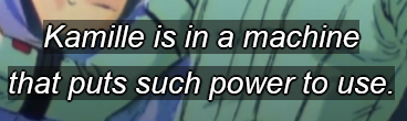 >>23784715>he almost killed himself subconsciously by taking off his visor in spaceIt’s quite clear that Kamille wasn’t entirely mentally sound or free from stress, but to claim that all his behavior surrounding these final episodes was completely irrational is to downplay some of the series’ most compelling moments, such as his own response to Haman in the theater.>and his speech was borderline incoherent. Obviously, if you don't understand and deny what he's trying to say, it's “incoherent,” but to me it's pretty clear. I'm not saying you're wrong about it (though that's what I think), but rather that the way you're putting it is a circular argument.>All high level Newtype stuff is cursed as fuck. It's space magic that makes people go crazy and die.You say that as if Lala and Amuro’s encounter hadn’t been an expression of deep, loving understanding.Or as if the Psycho Frame incident in CCA weren’t the same thing.Even in Zeta, the interaction between Haman and Kamille wasn’t madness. it was an attempt at communication, albeit a failed one.