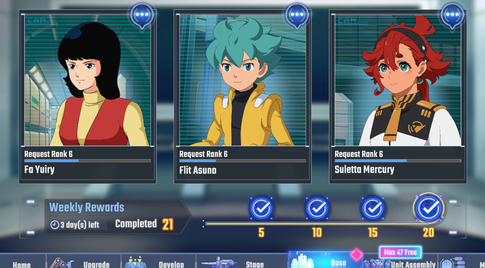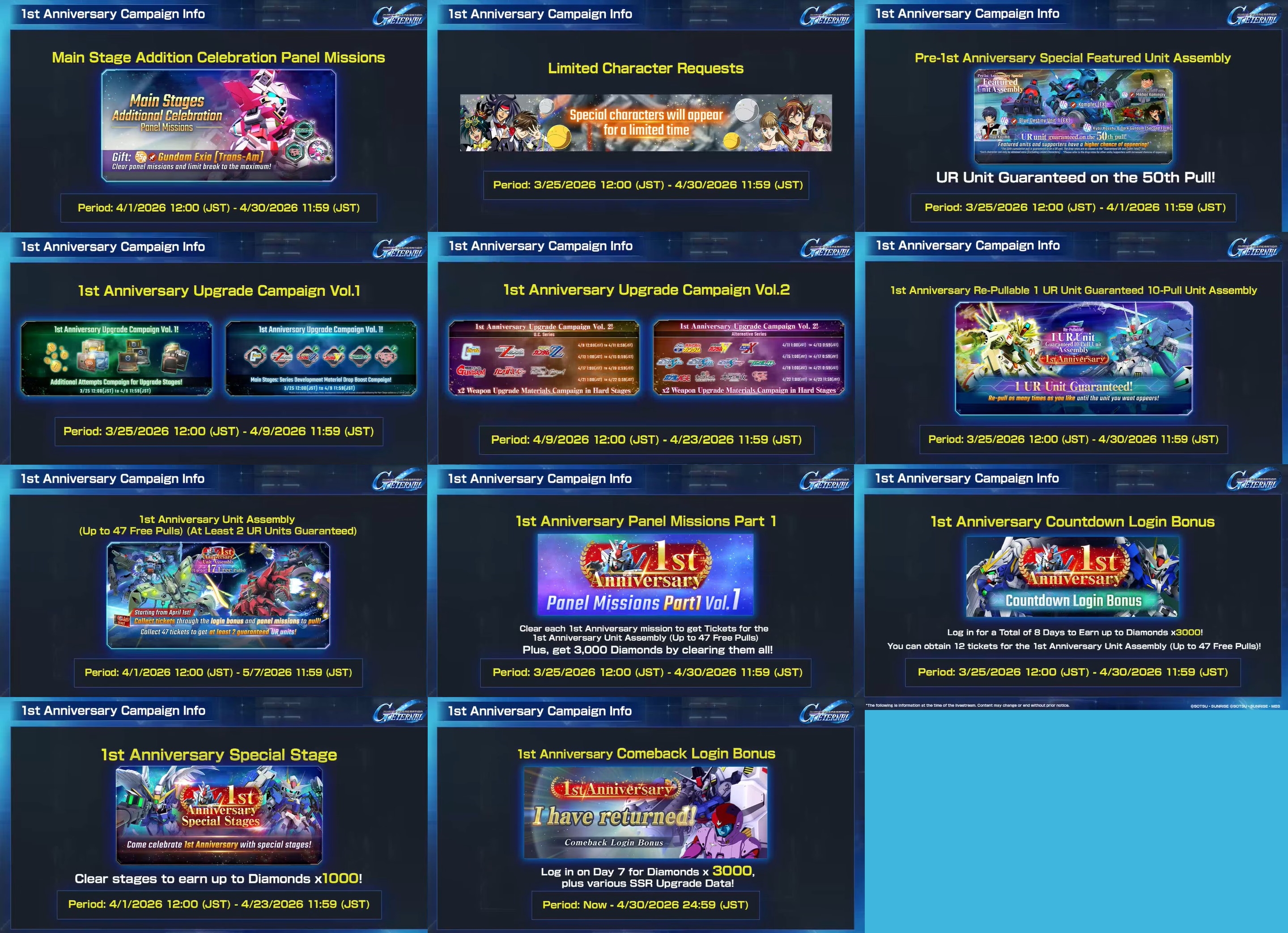 >Complete missions to obtain The Gundam limit break materials, upgrade materials, 100 SP coins for AGE units only, and other rewards