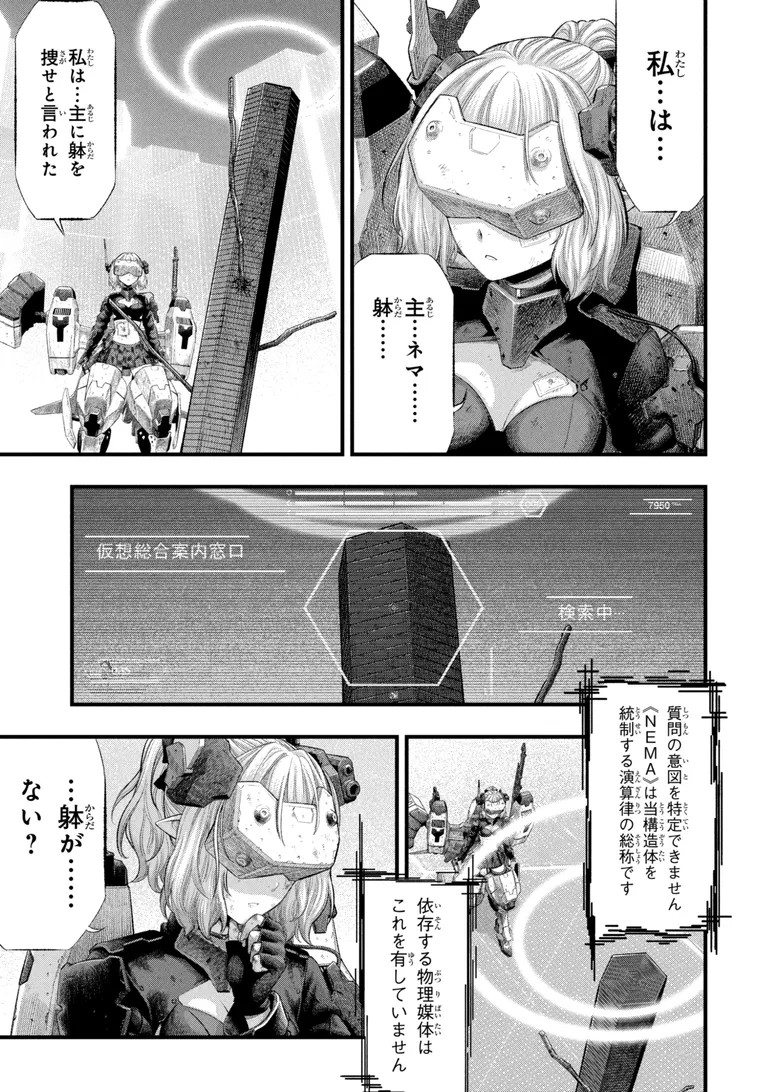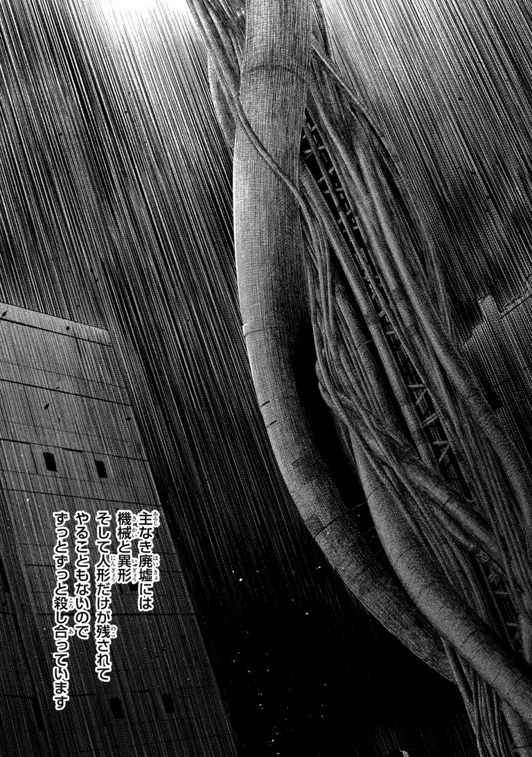 >In this world with no master, all that remained were machines, variants and dolls. With nothing left to do, they have just kept killing each other for ages.