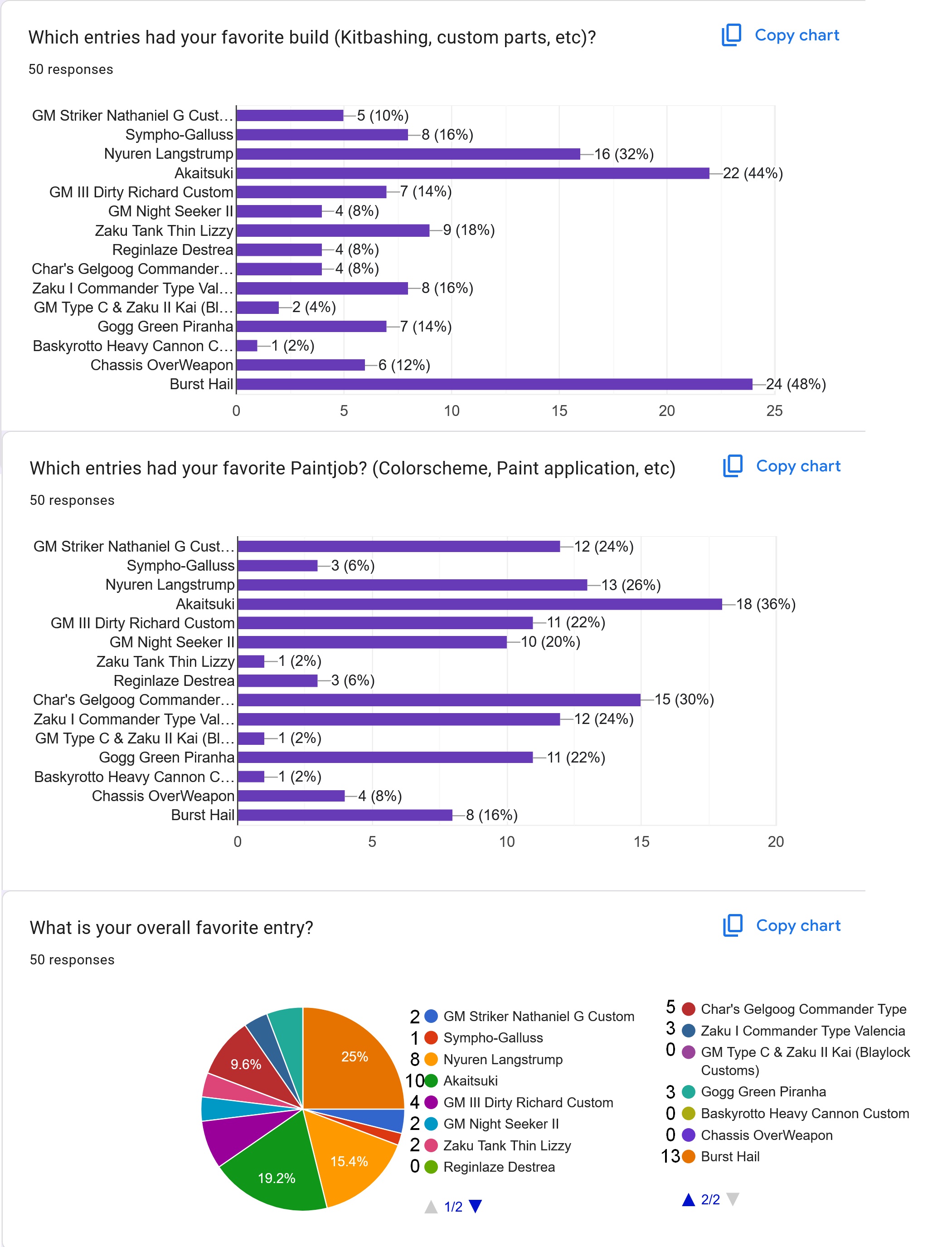 >>23811437Choosing between Langstrump and Akaitsuki for my favourite was already difficult but when Burst Hail showed up it made the decision even tougher. Congratulations to the top three! Thanks Groupbuild Dude for organising, shout out to Night Seeker for the great paintjob, and I kneel to Gogg supremacy.