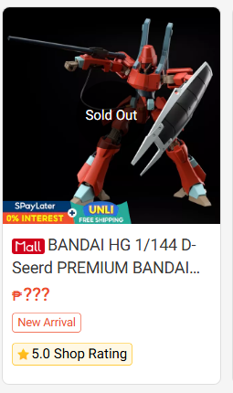 P-Bandai Reissues, keeping in mind Code Geass stuff is also part of the list>MG AGE-1 Unit 2 (still waiting for that Assault Jacket, Bandai)>MG AGE-2 Normal SP Color>HG D-Gundam Second>RG Red Dragon>HG Lancelot Albion>HG Gawain>HG Guren SEITEN