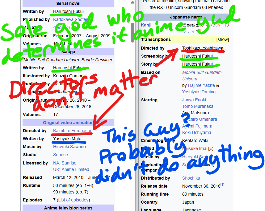 >>23814308All this tells us is that you made this thread to hate on Gundam NT and praise Unicorn. But then anons pointed out the same writer wrote both stories. So you freaked out and had to run to Wikipedia to check.So now you are desperately trying to come up with some weird new argument.It's not working.