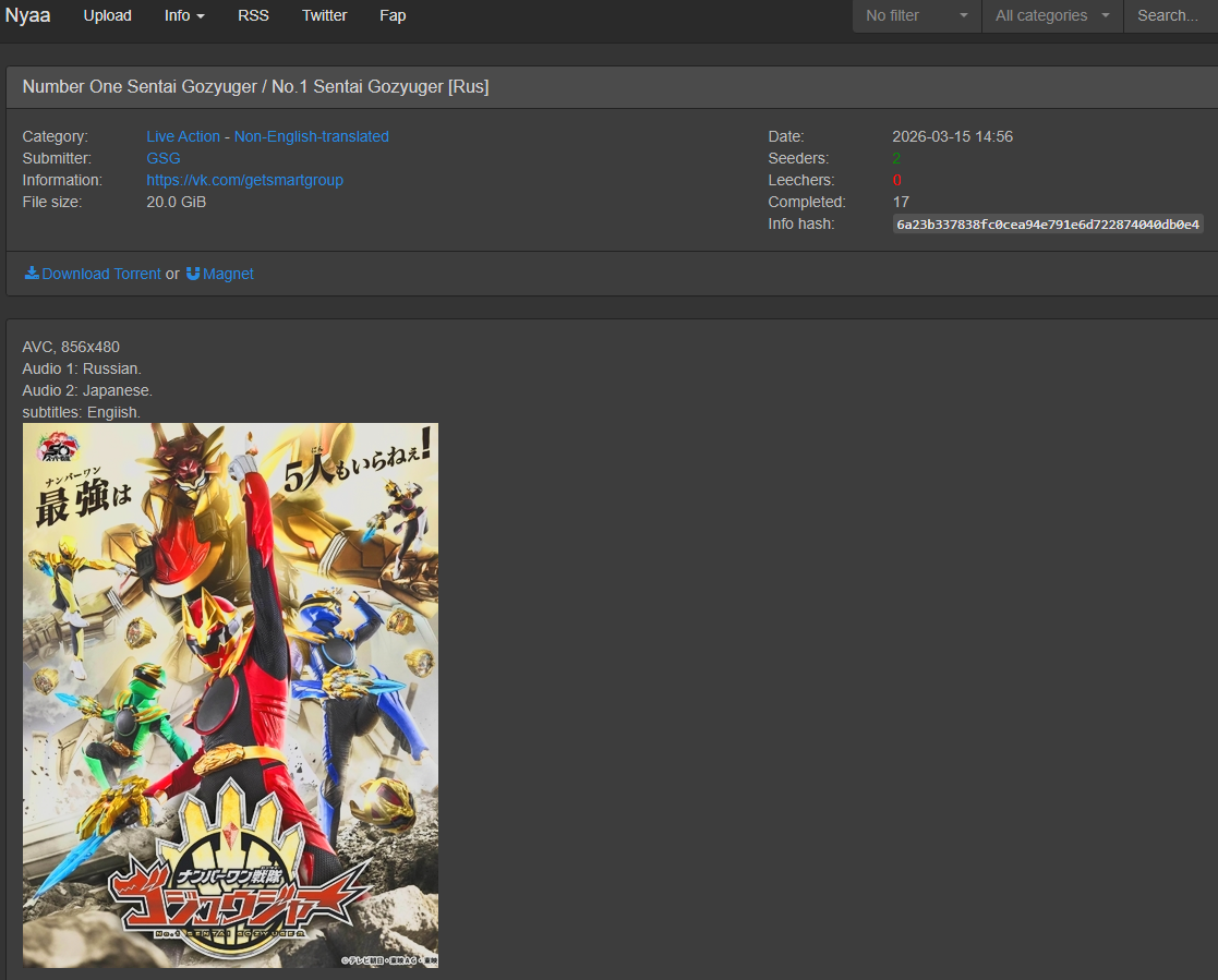 Previous Thread: >>23812679>List of subbed serieshttps://tokusubs.wikia.com/wiki/Tokusubs_Wiki>Direct Download Linkshttps://pastebin.com/uynBpq35https://docs.google.com/document/d/1iAaxZsRy5ZBUExP_kg21PwFHzK9l8UljCkK2u6hNIfUhttps://docs.google.com/document/d/19wl37LsDD4J_yqR7usLNkXA4hGAXngnlI3HgSgMN2Kkhttps://docs.google.com/document/d/1W3nlhtioorLWE8g5HJSKCAUoTGicFKeLh5d4JXZmAKs>/krg/ archiveshttps://desuarchive.org/m/search/subject/krg/>RideChemy Card Databasehttps://airtable.com/shrdjNECTvthHGcHo>DO NOT MAKE A NEW THREAD UNTIL PAGE 8 OR IMAGE LIMIT