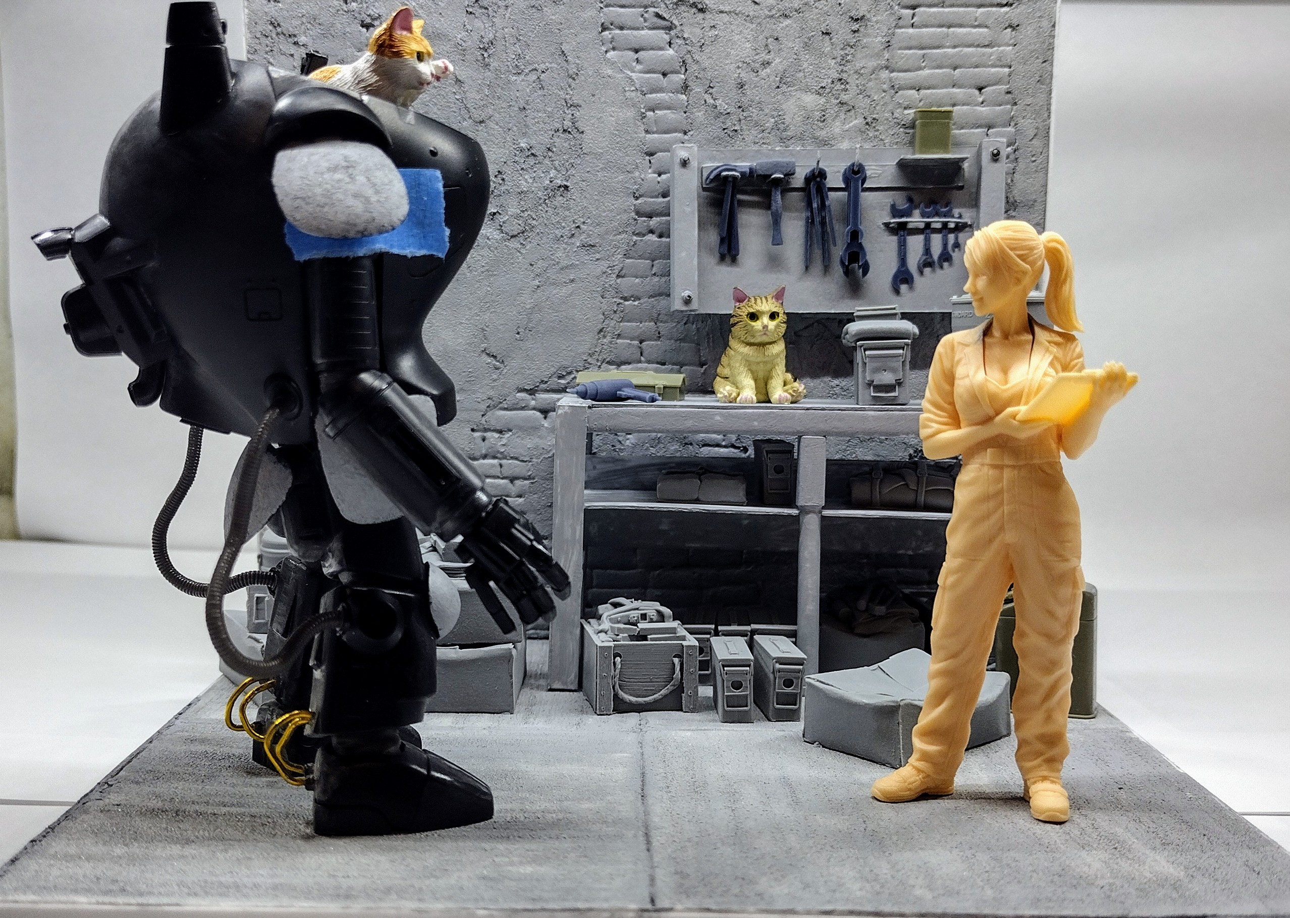 >>23835609small update, I think she came out really well :) might do a bit more touching up. almost done with the suit and one of the cats :D plus I got almost everything base coated *also I'm trying something new. I noticed that pics on my phone scale bigger on PC so I took a screenshot of my photo to test if it fits better.
