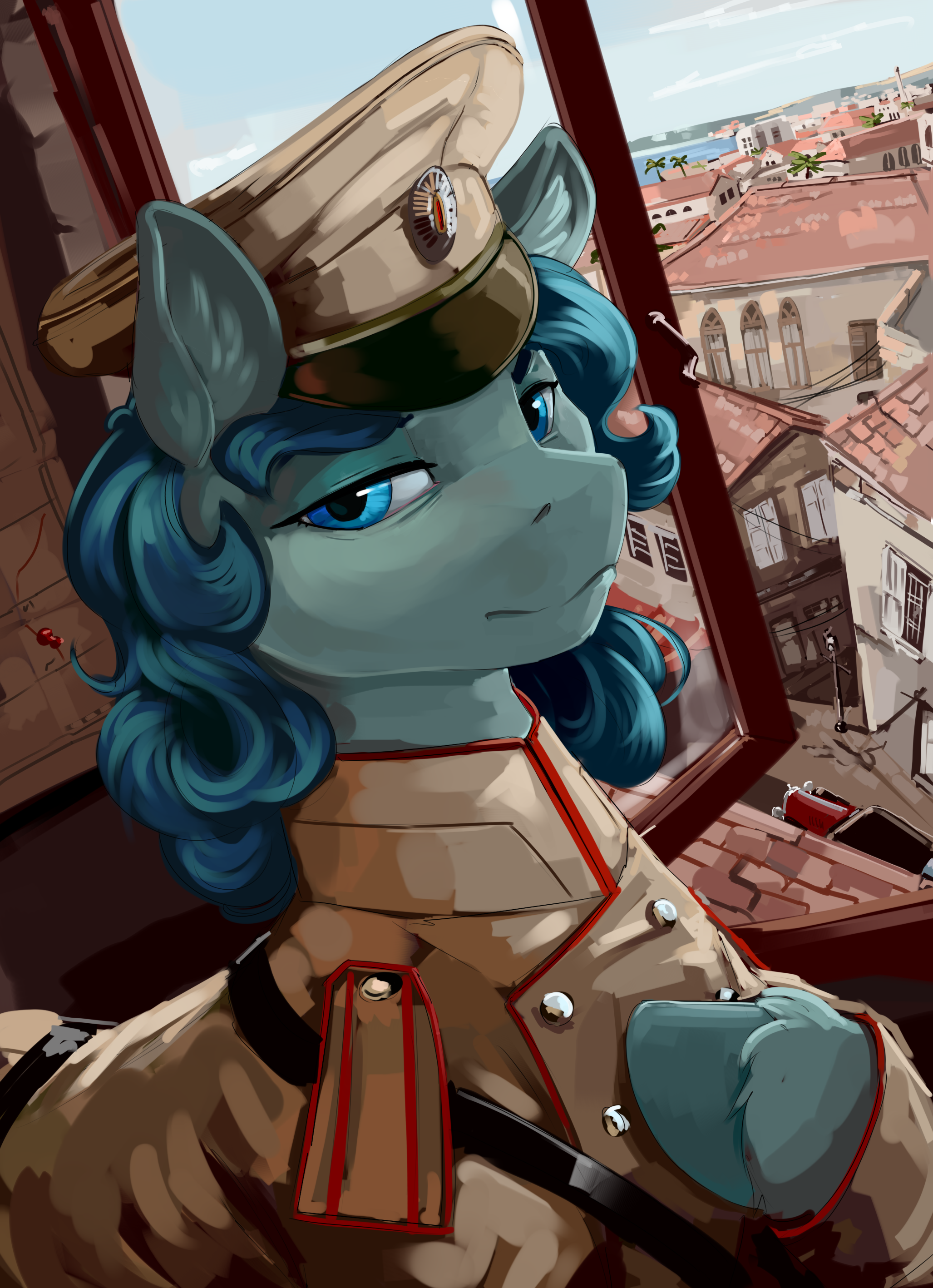 >>42904937>Second-Lieutenant Anonymous, a human in remission and currently an Earth Pony stallion, considered his options as he hurtled down the slope of stone and earth that had met him on the other side of the castle's destroyed window. The culprit had been deliberate in their approach; coming from the east side and bounding out the west had seen its' trajectory towards the upper ring's commercial district. Had it done the opposite, they would have simply been drawn further into the castle's interior and made it easier for them to be captured. This was a calculated crime, but that wasn't surprising. The theft of the Royal Crown wasn't something somepony just did on a whim, surely. Regardless. The slope was due to end shortly. The culprit stood out from the pastel bright surroundings clad in some sort of black garb that hid their body and Cutie Mark entirely - and even seemed to have room for their mane stuffed in it, ensuring there was no identifying feature to them - but they were quickly becoming harder to discern as they made distance. Anon's next move was decided for him as the thief contracted their body and threw everything they had into a mighty leap, lunging right over the moat, clearing the other side, and finally engaging in a series of wall jumps between two buildings into the commercial district proper. All with the practiced ease that suggested that they had practiced the maneuver at least a thousand times before to do so. Anon made a brief mental note to have anyone who had maintained the perimeter of this part of the Castle reprimanded, because there was simply no way they just miss that kind of ruckus without either being incompetent or in on the conspiracy. For now though, as the old saying went: When in Roam, start Roaming.>While the grace and speed of the thief were something to be admired, two worlds worth of military training meant that Anonymous had plenty of daring to pull off the maneuver and strength in his haunches - kicking off the edge of the moat to cross it was foal's play, and more than anything, he had to scale back the power of his kicks to ensure that engravings of his hoofprints weren't left behind on the buildings he was using to ensure his fall didn't incapacitate him. While he had managed to not damage the properties, the sound of his clanking metal armor and descent alerted the culprit that he was being tailed. A glance backwards and a widening of the eyes was all the warning Anonymous received before the thief bolted with renewed vigor, knocking aside civilians who were simply making their way through the district. Their panic had cost them their composure, and in doing so left behind a trail that the Second-Lieutenant was able to follow, keeping a bead on the black-clad pony all the while. Desperation grew in his target's movements.