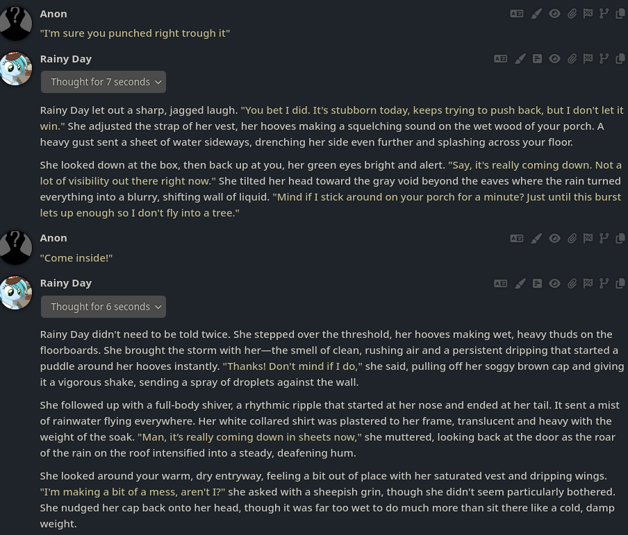 Welcome to Chatbot AI General #164, the thread for discussing and improving AI pony chatbots.▶ MLP Botshttps://mlpchag.neocities.orgSpreadsheet (CAI bots + Old repository):https://docs.google.com/spreadsheets/d/1J7BeqJVDS51cXF8Pgm2YZaFq-Z6ykSJTSillyTavern website extension: https://github.com/MLPChag/SillyTavern-Chag-Search or https://github.com/mia13165/SillyTavern-BotBrowserBunch of Character Cards (Descriptions/No Greetings):https://docs.google.com/spreadsheets/d/1Y6LNOCqAZAWIX-OBEv55HjlzcEdpUh-XbKCpbpL6v5kCAI bots converted to Tavern: https://files.catbox.moe/ckurq1.zipExpression packs: https://rentry.org/ChagExpressions!!!GALLERY!!!: https://drive.google.com/drive/u/2/folders/1Ao-h5HFGMPllSrzSBKM_BvGSiU9f0c2U▶ How do I start?1) Select a FrontendComment too long. Click here to view the full text.