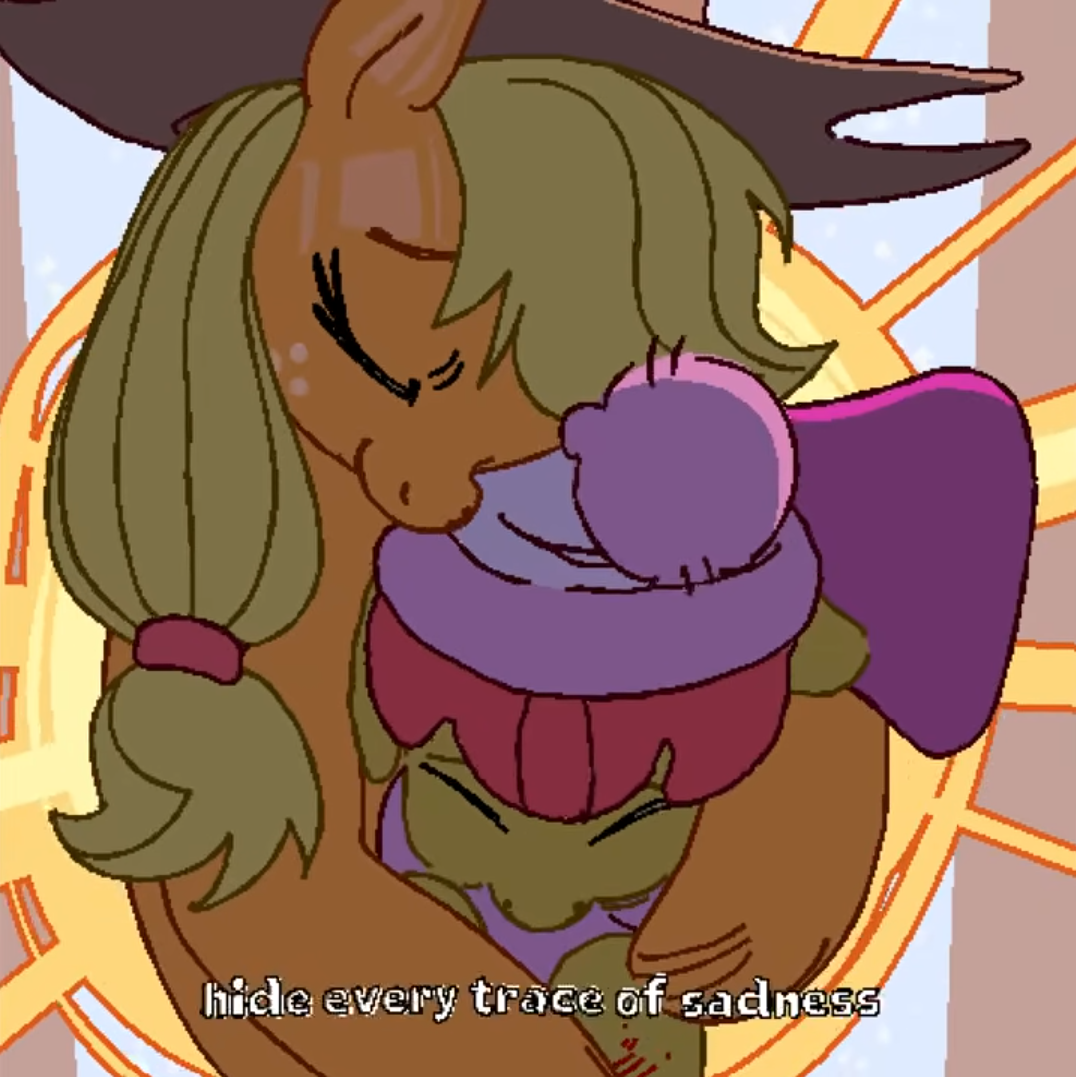 >>42883086>extra panel where Moondancer ties up Twilight and gags herdoes she draw the gag and tie rope?