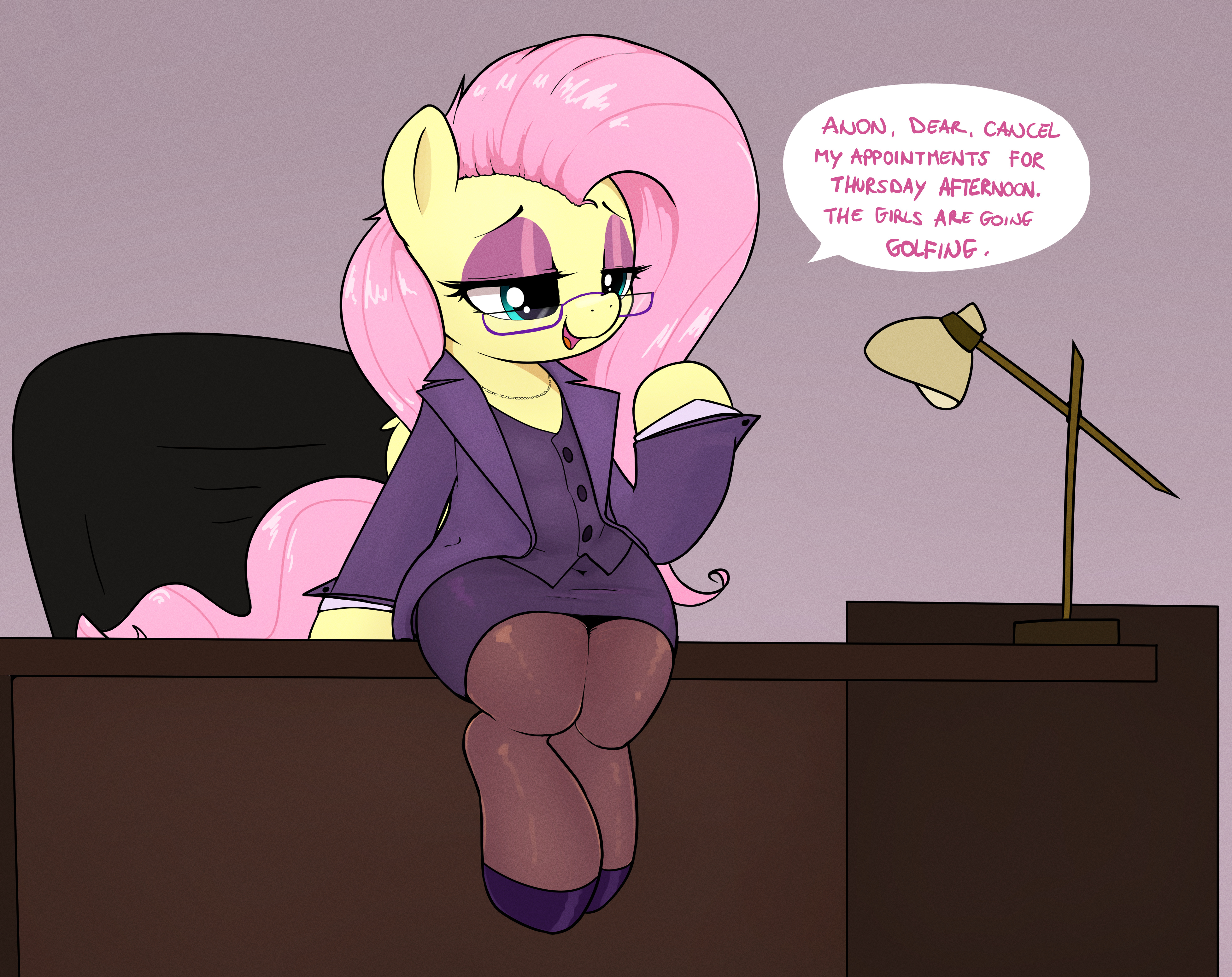 >>43151514>Fluttershy keeps breaking into your study so she can pretend she's a big important CEO and you're her eyecandy secretary