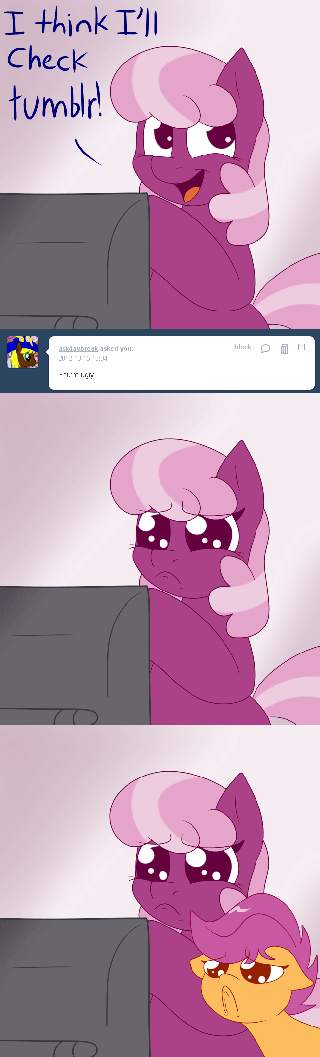 >>42874631>"RAINBOW DASH WE'VE BEEN EXPOSED!">Fluttershy awkwardly tries to fly off from your window while a blue flash exits your underwear drawer.>Along with most of your underwear.