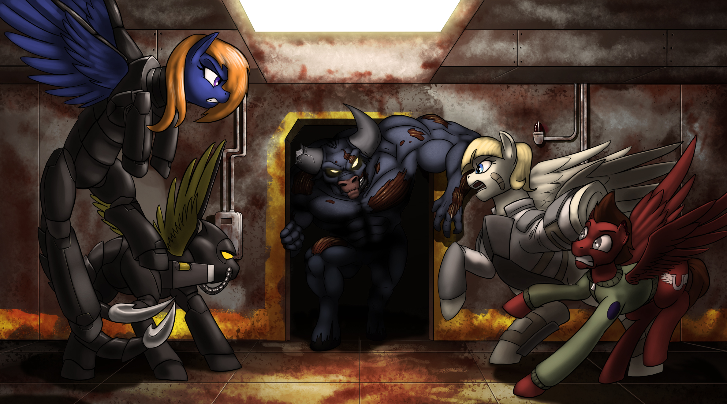 >>43154987>Your dad- your human dad, you never had a pony dad- liked to call anger a guard dog. Chain it up and it's useless, let it free and it invites trouble.>But feed it, love it, train it, make it respect you? The embers of that will get you through anything, even if it kills you.>God. He was so fucking corny, but Equestria likes corny shit like that.>It's a place where silly old people making clumsy metaphors can be the coolest fuckers in the room. Where the government actually kind of gives a shit in a selfless and honor-bound way. Where a purple, chubby little nerd can stun an ancient warlock with her friendship doctrine long enough to cast Power Word: Fren. Where a borderline charlatan hobo can warm the hindquarters of a national hero with some line from- yeah she stole that from Hinny of the Hills!>The idea that right now, all that could end? Not just you, or Trixie, but that right now could be the start of a chain of events that destroys such a strange and precious little corner of the cosmos?>Failure is not an option. Anything less than 100% survival is unacceptable. Nobody gets left behind, not this time!>Tear yourself out of her grasp, caress her face. No, do it right, take her face in both hooves. Gaze into her eyes as the world falls apart. Get lost in those eyes, so lost that death itself would never find you.>It could be the last time, but not for lack of trying.>Kiss her. Snap out of it, get to that bellows and PUSH->Imminent danger. Threat approaching: above and behind!>You react to the rattling in the ceiling before you hear it- oh yes, the sound reached your ears, but you didn't *hear* it until well after the crisis. Fight or flight can be like that.>A blue mare is thrown in a direction that you hope against all hope is safer than here. >Scalding steam and shrapnel meant for her comes for you. Your leg is screaming red and you tumble head over ass, leaving you flat on your side farther from your goal than when you started.Comment too long. Click here to view the full text.
