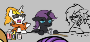 >>42746790>quantum marechanicsPinkie has A LOT of energy levels (which would imply heavier nucleus, but we already know she's kinda pudgy).Every time she goes down an energy level, she emits a quantum of FUN. It can be absorbed by nearby mares to raise their own energy level, i.e. get excited, but when they're already residing at a high energy level, a stimulated emission of FUN happens, triggering a party event.