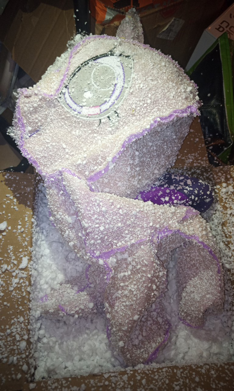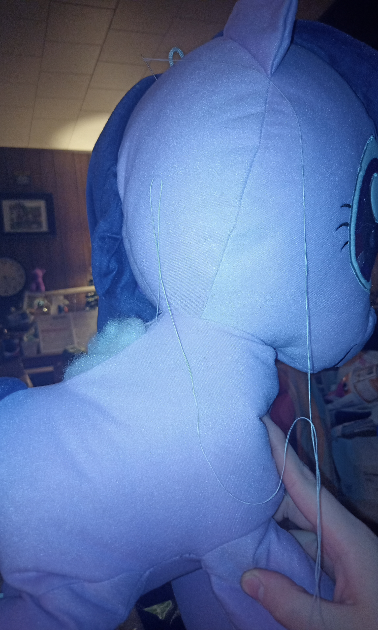>>42608729But finally, after much suffering and Styrofoam and shitty haphazard stitching, twiggles here has been not just upgraded from awful Styrofoam stuffing to proper squishy stuffing, but also upgraded(?) to unicorn twilight as well. I think the wings were machine-stitched into her back, so even if I wanted to, I don't think I could've put those back in, lol