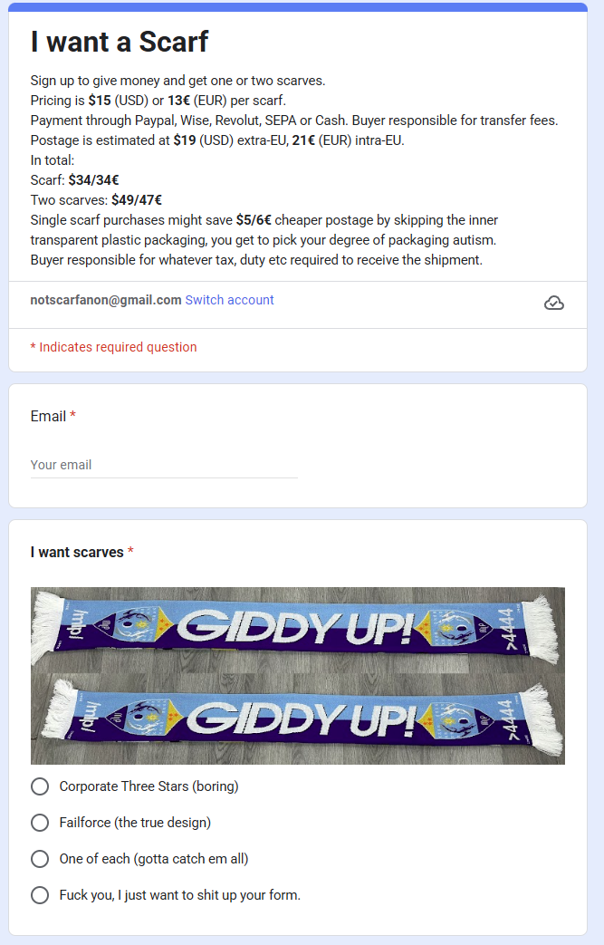 >>42642452So would two scarves + packaging be around £50 quid?