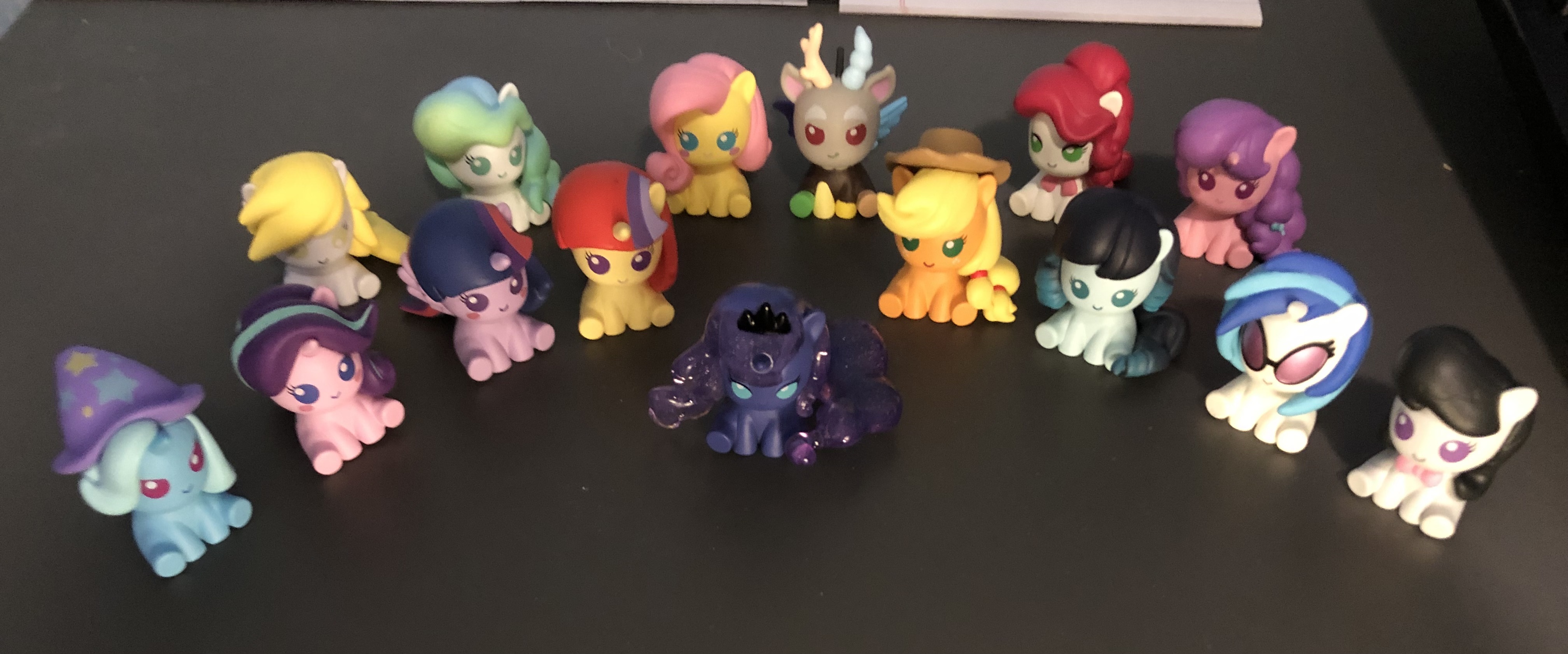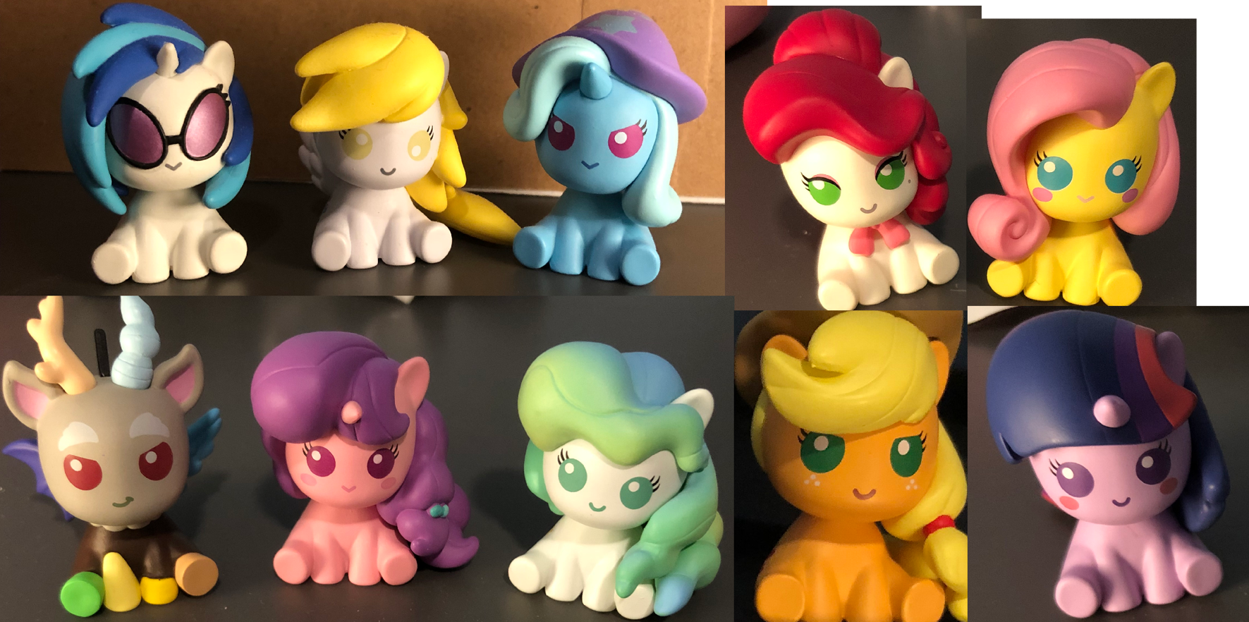 >>42667744No problem. >Do they have Cutie MarksYup they have cutie marks. Here are some of them. Another thing is that I like some of their eyes and mouths are different. Just a little detail.>>42671377It is nice. I'm hoping for a Coco Pommel, but I don't really know the status of these figurines. Funism has a Pinkie and Fluttershy blind boxes that is different than these smaller figures, and who knows when these will get a new one. I assume since this first set has Twilight, AJ, and Fluttershy then the next one will have Rainbow, Rarity, and Pinkie.>>42671399I was surprised to. Especially Cherry Jubilee since she wasn't really the focus of the episode she appeared in.