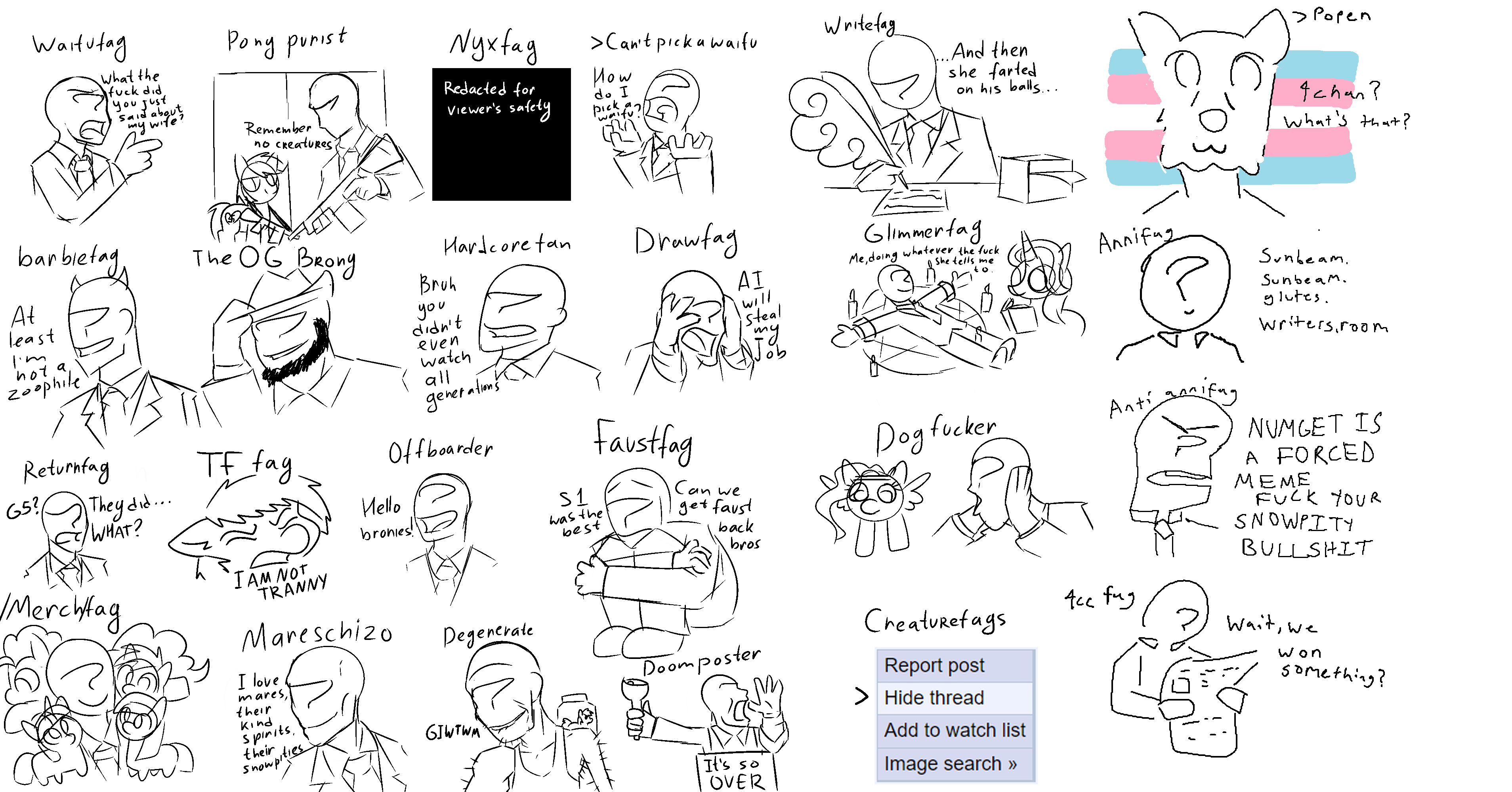 A small group of anonfillies ree'ing at a newfag