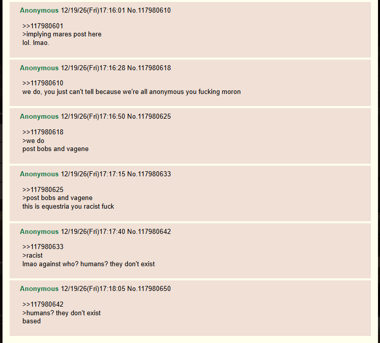 >>42636426Why would anyone use Opus6 and have someone reading your logs but this is /mlp/ where people still talk about something that ended years ago with the mods still not just nuking the whole board