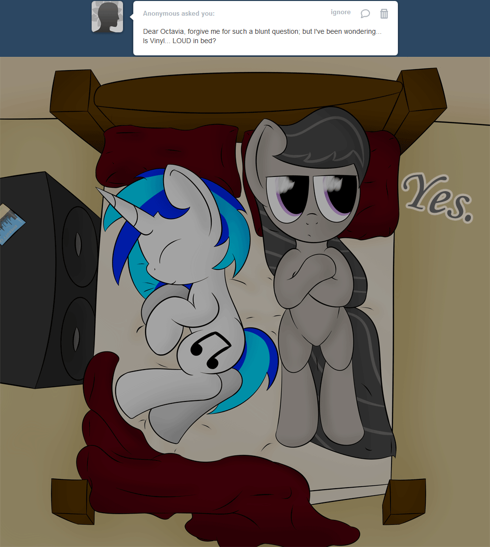>>42725969For every action, there is an equal and opposite reaction.https://derpicdn.net/img/view/2015/11/4/1016256.pngIt's also the only way Vinyl can go to sleep as if she isn't suffocated unconscious by donk ass she'll want to fuck all night long.>>42725974>"Vinyl... dare I ask why you felt the need to simulate us having intercourse in marecraft?"