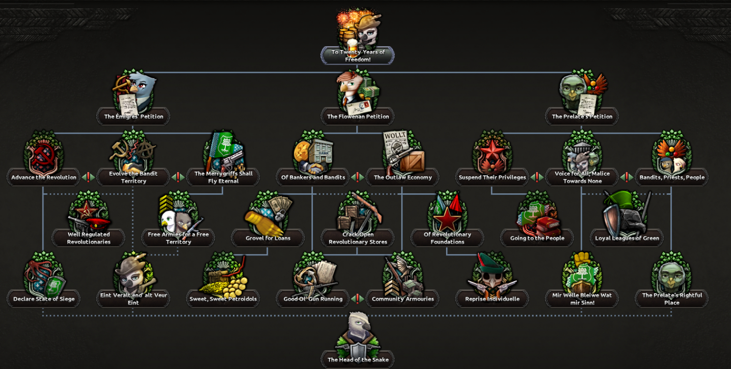 >>42720584>Over the green glades of Adelart, the jovial free griffs dream of an unimpeded tomorrow; that a society so conceived in defense of their liberty, against tyrants both foreign and domestic, shall endure! And to this end, Adelart's focus tree will be redone to the standard of its existing graphical work, so that the despots of Aquila and Griffenheim alike know that they can take from us our land, our safety, even our lives - but as long as the merrygriffs ride, they will never take our freedom!