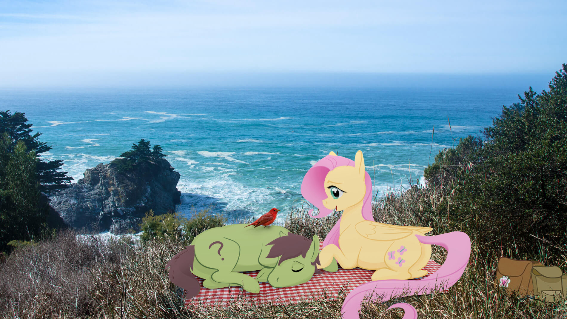 >>42642058>"I still can't believe you threw away a letter from Celestia-" Rainbow cuts her own words off with her chuckles>You're glad at least one of you sees some comedy in this>Cause you're still a little freaked out>Rainbow's reassured you a dozen times by now>Apparently the immortal god-like monarchs that rule these ponies are, to quote Rainbow, "pretty chill">You could argue against Luna maybe>Your waking body still aches from what you went through in a dream>Seriously, though, what is a changeling?"I thought it was a joke, alright?">"That's what makes it so funny." Her laughter is renewed as she spins around you>You don't know how she knew when you were going to leave, but she was outside your door just as you were ready>You’d reminded her she didn’t need to come with you to Canterlot>Her only response was “I know. Now come on.”>Leading to now as the two of you make the slow, longhaul flight to Canterlot>You peer down at the verdant fields and rolling hillocks beneath you>Winding through it, almost blending into the nature is a train line"I still don't see why we didn't take the train" You mutter more to yourself than anything>Not one to let a conversation go unsaid, Rainbow chimes in>"Cause this is faster""With how often I see you napping, I thought you'd like the train, less effort">"Well," Rainbow goes to argue, but pauses briefly at your logic, "yeah, sure, sometimes. But I only take the train if it's me and the girls. Only Fluttershy can fly and she isn't a strong enough flier to go from Ponyville to Canterlot by wing""So this is a treat just for me?" You sarcastically ask>You're answered with a small knock to your side from her hoof>"So, why did you think it was a joke?" Rainbow tilts her head at you as she asks"Well, why wouldn't I, Dash?" You shrug your shoulders at her. "I mean, what could the princess want with me? I'm kind of a nobody">She scoffs as if you'd just insulted her mother>That thought reminds you that you need to meet her parents at some point>You could probably get some good material on her from them>Your slowly growing smirk goes as Rainbow continues>"What do you mean? You're awesome, and I don't throw that word around lightly you know" She nudges you with an elbow and a wink"Rainbow, I'm pretty sure I heard you use that word a dozen times yesterday">She waves you off with a smirk. "Correction, I don't use that word for other ponies, lightly, how's that?">You're still unconvinced"And what exactly have I done that's so impressive? Aside from being a hermit for a few months straight">She snickers at your joke then pauses as she realizes you're serious>"Oh. Come. On!" She throws her hooves up as she looks at you. "Dude, that contest you did with me? You saving Mach from the Everfree? That prank war with Applejack?” She snickers lightly at the memory. “Not to mention the fact you spent everyday working to get better at flying? How are you not awesome?"