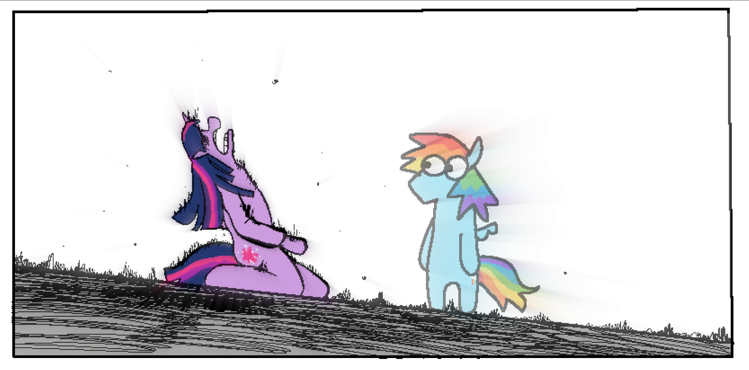 >>42703739>"You could've had it all, Anonymous.">Twilight shakes her head and sighs with an exaggerated tone.>"Riches, royal luxuries, a loving queen, and more foals than you could count.">She grabs you by the neck with her magic and hoists you into the air.>You gasp for breath and struggle to escape, but Twilight's magic is far too powerful.>"Instead, you chose an early grave." She sneers.>"A-Anon?!" Derpy squeaks. "What's going on?! Why is the princess angry?!">Twilight glares at Derpy and grabs her in a separate blob of magic.>"Perhaps there's enough time for one final experiment before your execution.">Her eyes and horn glow a bright green hue.>Something tells you this is going to hurt. A LOT.>It's time to spring into action with some last-second heroics and-"AAIIIIIIIIIIEEEEEEEEE!">You scream like a weenie and twist yourself free from Twilight's magic.>Thankfully you manage to shove Derpy out of harm's way with seconds to spare.>*ZAP*>You hurtle to the ground face-first with a crippled wing.>Derpy yelps as her big bubble butt makes contact with the hard stone flooring.>The floor next to you melts into a pool of what appears to be magical...acid?>Oh no, that can only mean one thing..."Ch-Changeling magic?!" You sputter. "How did you learn changeling magic?!">Twilight chuckles like a serial killer and re-aims her horn.>"Let's just say our diplomatic relations with the changeling kingdom...went up in smoke.">Her lip curls as she prepares to fire another blast of green magic.>"Fear not, for the late queen's magic shall not go to waste.">The pain from your broken wing says there's no chance in tartarus that you'll be able to dodge this attack.>Derpy whimpers beside you, seemingly aware of your impending doom.>You hold the frightened mare close and nuzzle her one last time."No matter what happens Derpy, I want you to know something.">"W-What's that, Anon?" She asks."I love you, with all my heart."